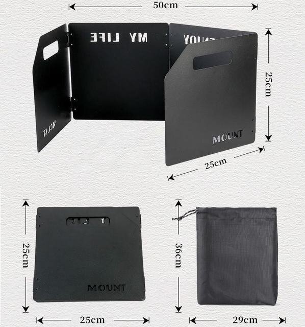 キャンプ風防 ウインド スクリーン 風よけ板 防風板 カセットコンロ ガスバーナー 展開式 アウトドア キャンプ 収納袋付属 ブラック