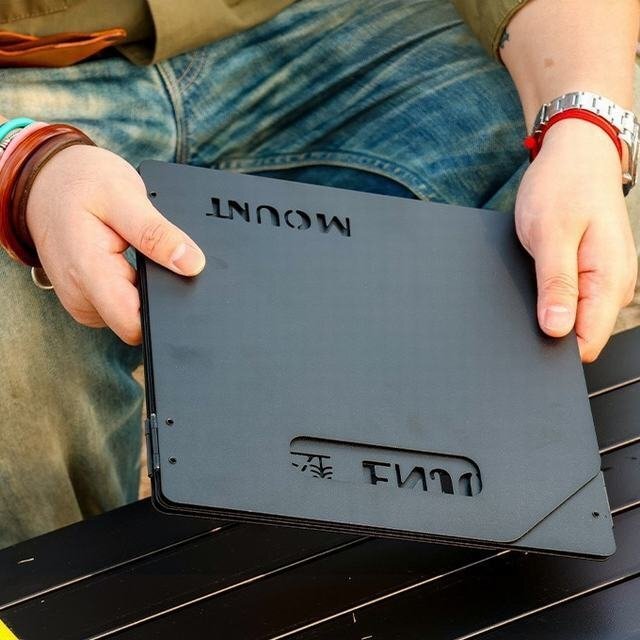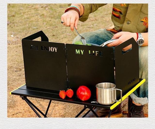 【折りたたみ大型風防】4枚のパネルで構成された大型風防。コの字型に設置でき炎を風から守ります