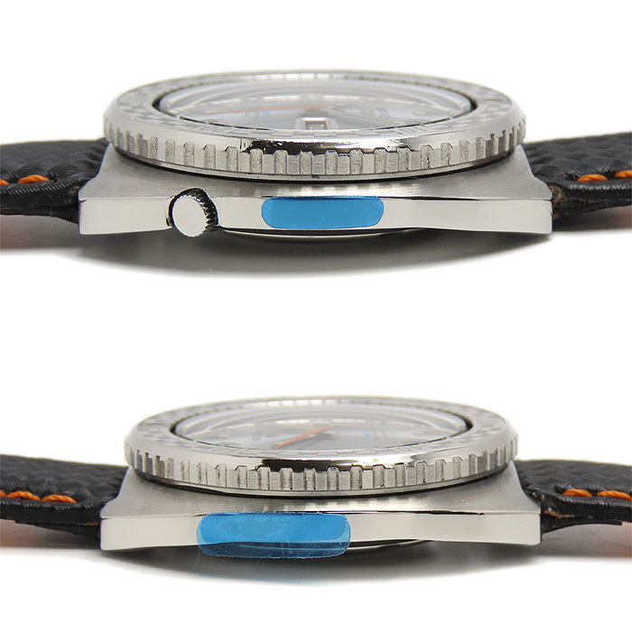 メンテナンス情報 コンディション | 弊社指定の時計業者にて、O.H.(分解掃除)、ポリッシュ済みです。 針やダイヤルのフチに腐食、ベゼルやケースに小キズ、裏蓋にキズがあります。社外品のベルトはAランク程度です。軽い使用アトがあります。 |