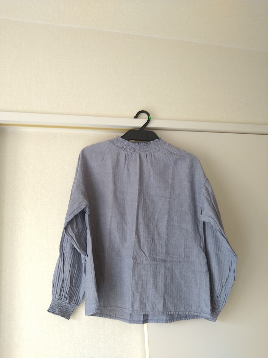 くしゅっとした襟シャーリングデザインが可愛らしいブラウス。