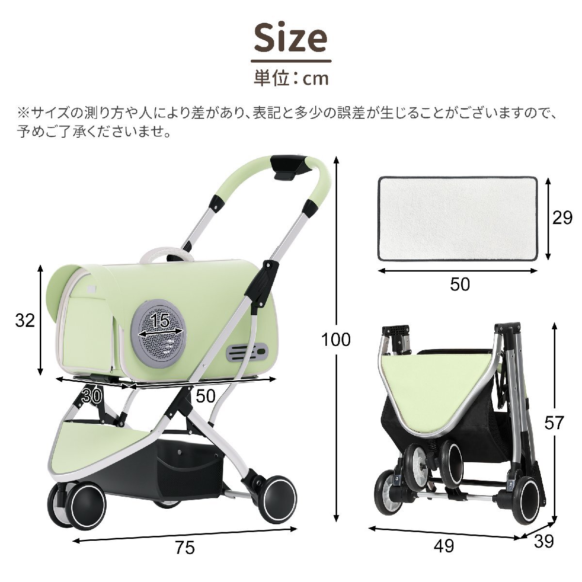 • 【商品仕様】ペットカート展開サイズ(約):長さ75cmx幅49cmx高さ100cm 収納サイズ(約):長さ49cmx幅39cmx高さ57cm 本体重量(約):6.6KG フレーム:高強度アルミニウム合金 生地:高品質なPU 車輪:EVA 耐荷重(約):15KG。