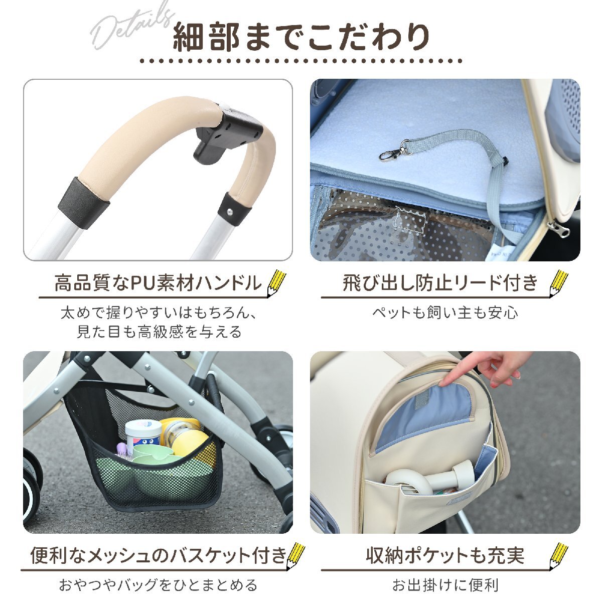 • 【たっぷり収納スペース】ペットカートのペットバッグには、収納ポケットも付属します。下部に収納バスケット付いて、おもちゃ、おやつ、水筒などすべての手荷物を入れることができます
