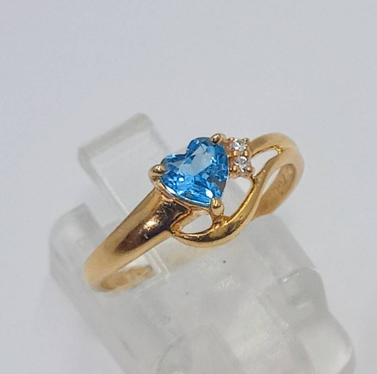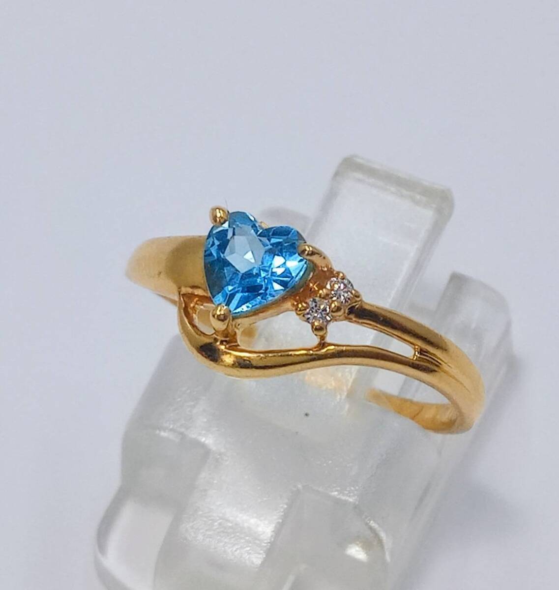 K18 YG 2.0g ブルートパーズ 1個 ダイヤ 0.02ct リング 12.5号