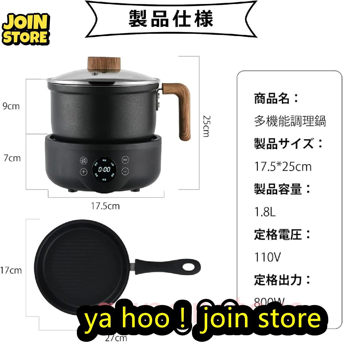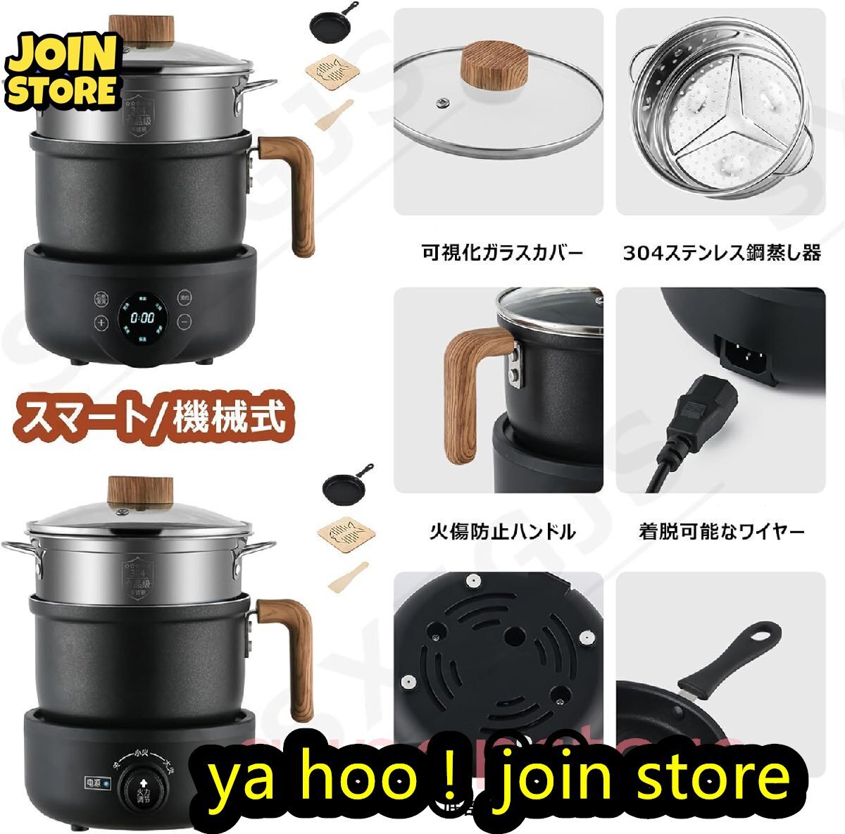 電気鍋 IH鍋 一人用 2人用 小型 多機能鍋 ひとり暮らし用 電気フライパン ポータブル多機能炊飯器 1.8L 600W 煮る 蒸し器付き 機械式