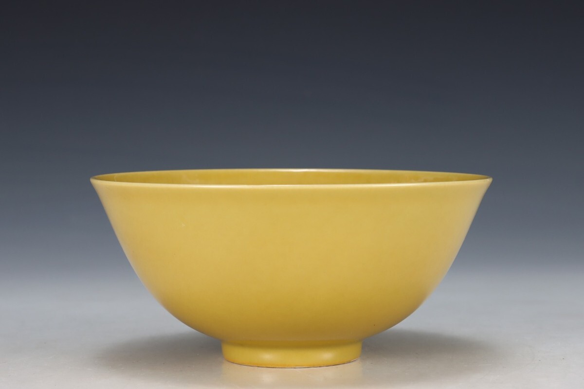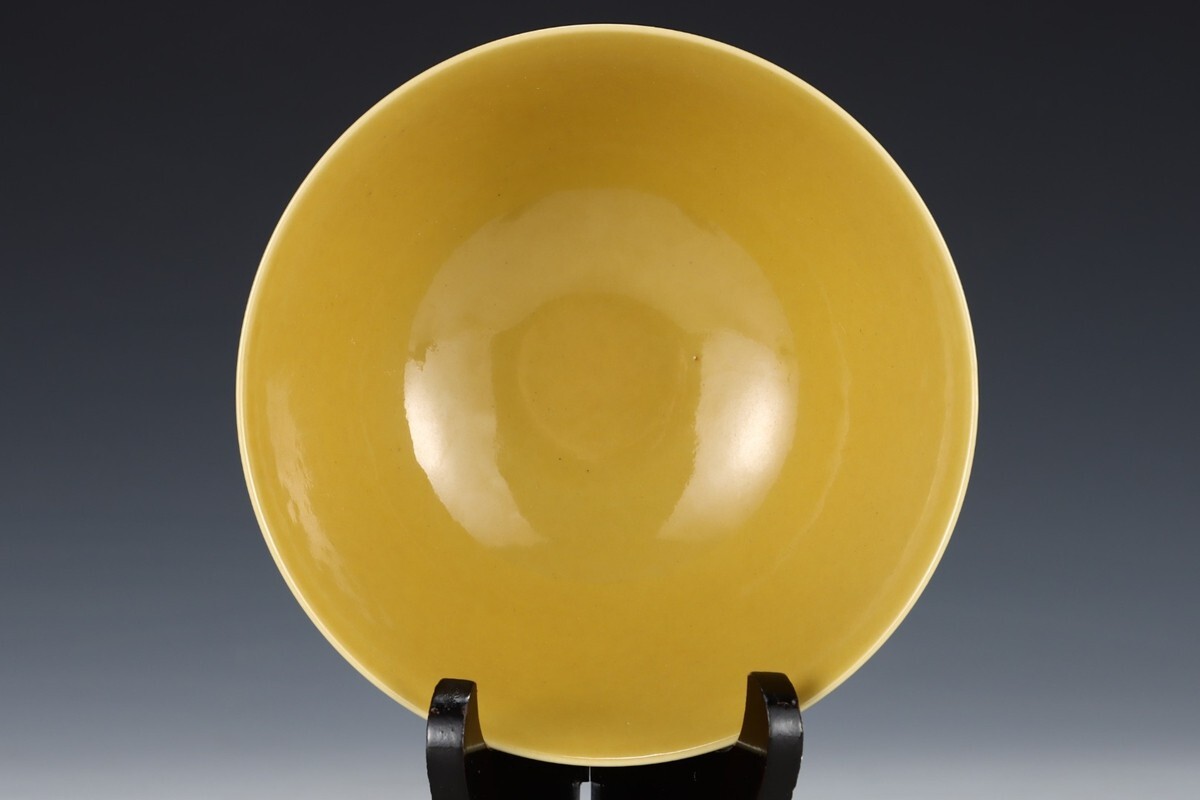 【瓏】陶磁器 黄釉 碗 大明成化年製 染付 置物擺件 古賞物 古美術 陶芸 蔵出