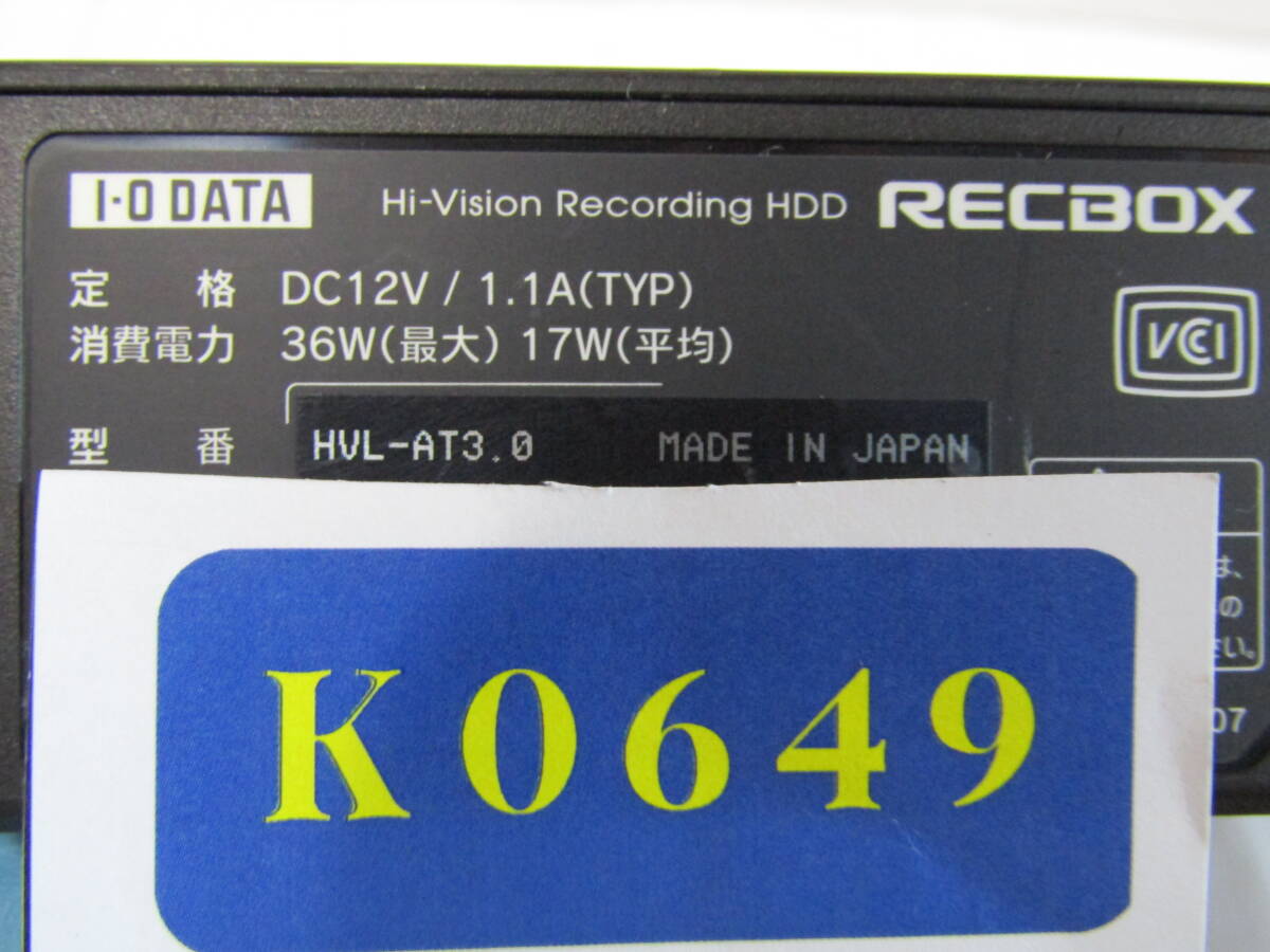 K0649 I-O DATA トランスコード搭載 DTCP+対応ハイビジョンレコーディングHDD 「RECBOX」HVL-AT3.0A ジャンク