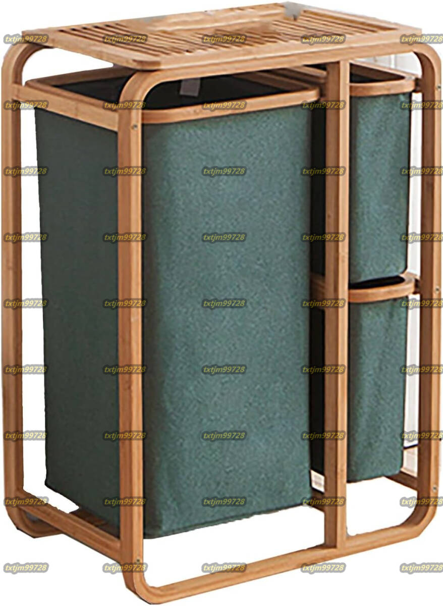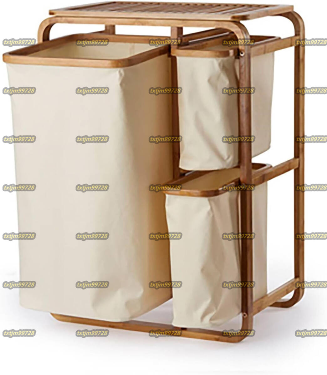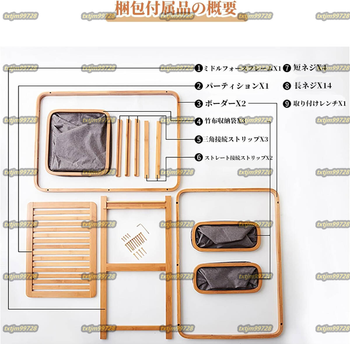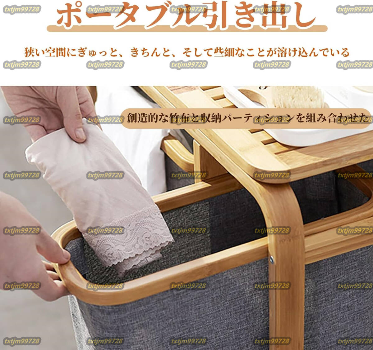 ランドリーバスケット 洗濯かご ランドリーボックス 竹製 収納ボックス 衣類収納 分類収納 ポータブル 洋服バスケット コンパートメント