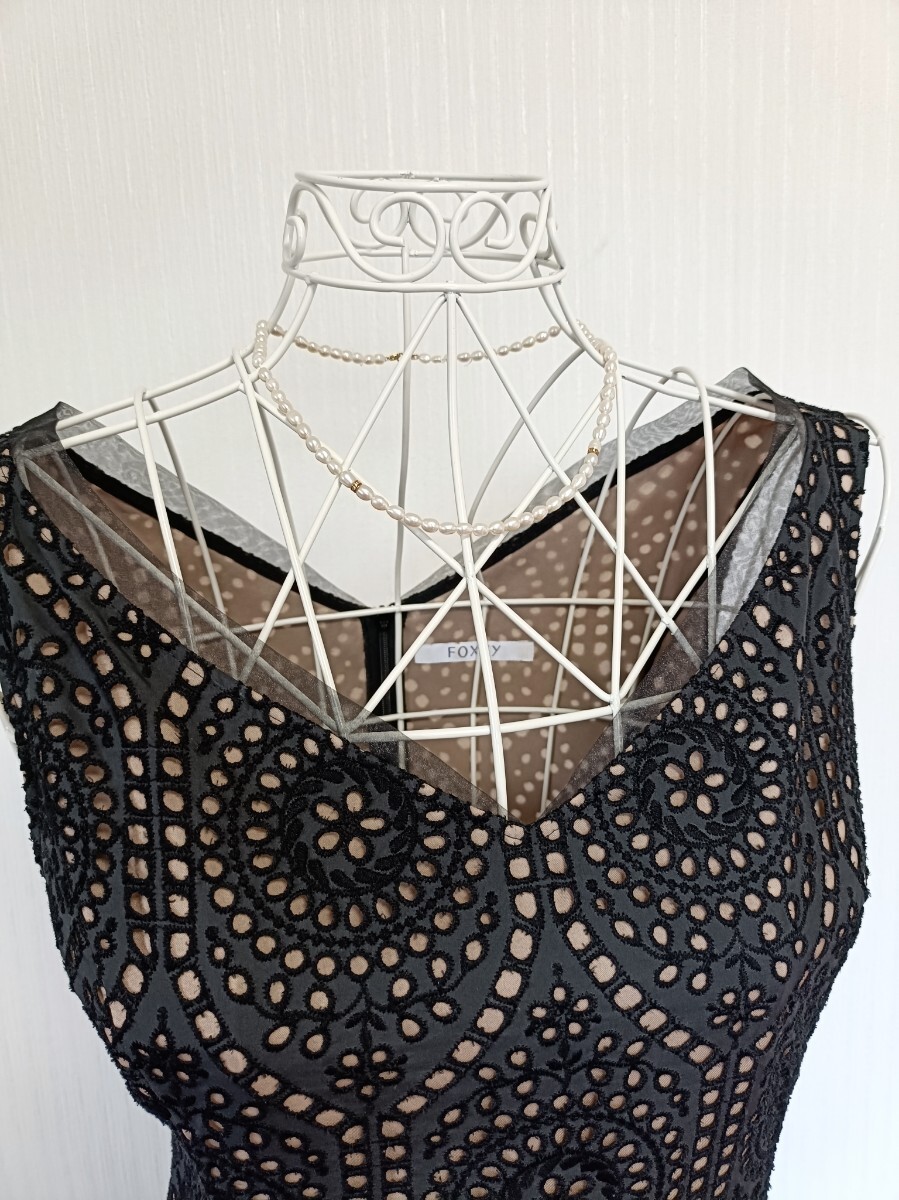 ※以前お譲り頂いたお洋服ですがこちら襟元のデザインをVネックの形に専門店で変更した物とのことです。元のお写真はフォクシーサイトよりお借りした2枚目のお写真をご参照ください。