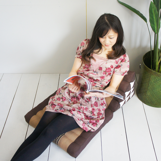 インテリア雑誌の「デザイナーのお部屋紹介」などに登場する三角形のまくらのようなクッション。あれは【三角枕】と言う商品なのです。昔、農民が休憩用に寄りかかれる大きなまくらを作った事が三角枕の始まりです。「以前宿泊したホテルで見たことがある!」という方もいらっしゃるのではないでしょうか。三角枕は肘掛クッション・背もたれクッションと大活躍の枕という名の三角形のクッションです。三角枕4段マット付きは、畳・フローリングの上など場所を選ばずお使いいただけます。