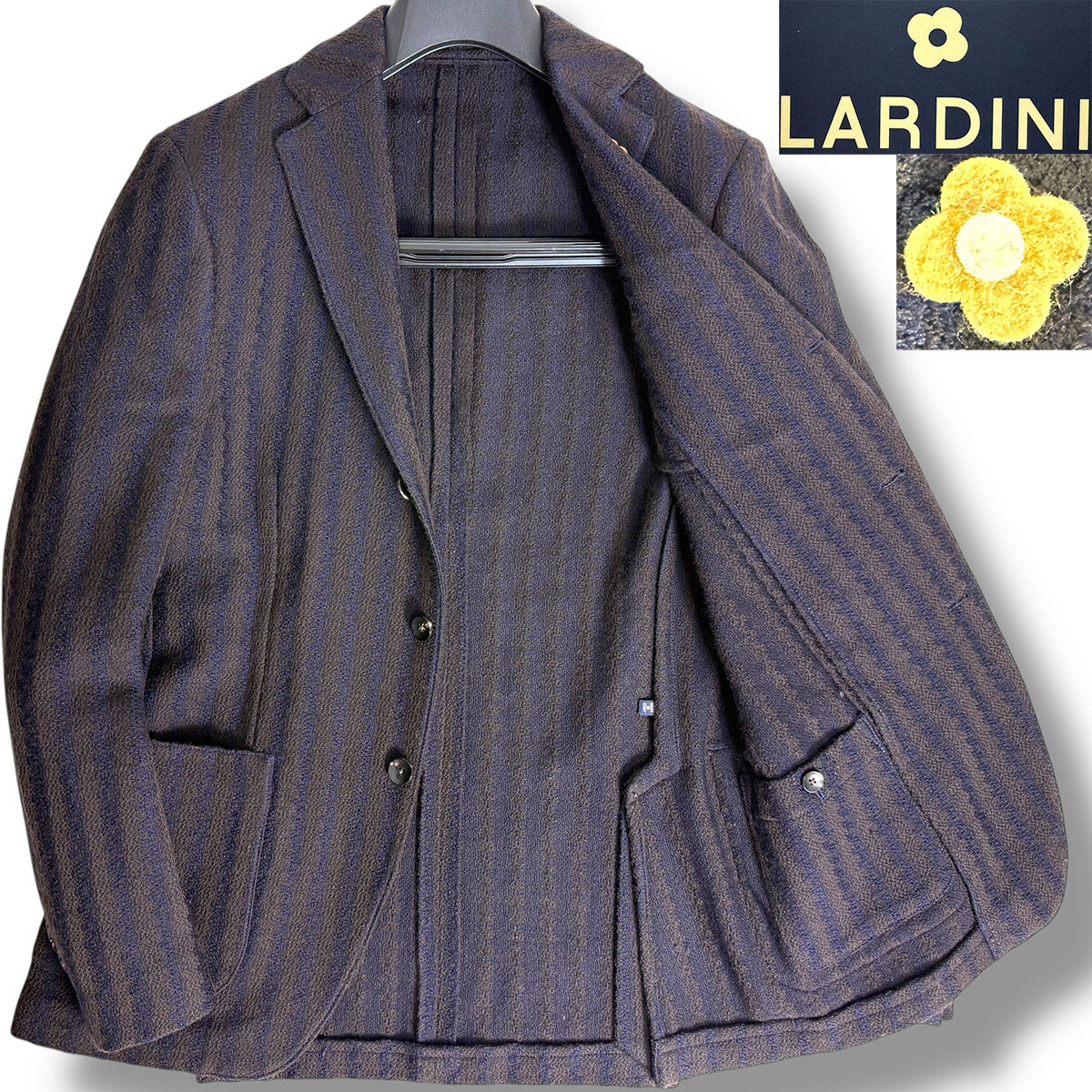 J3119 美品 ラルディーニ JJ903Q ウールニットテーラードジャケット ブラウン 46 LARDINI