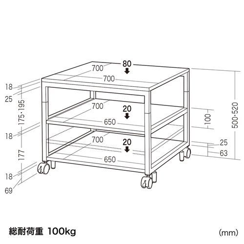 ※配送の送り主はサンワサプライ(株)と記載されています。沖縄・離島配送不可となります。 当店は正規販売代理店です。 特長 大型レーザープリンターにも対応する、スチール製プリンター台です。 初期設定で2段階の高さ設定が可能です。(H500mm・H520mm) 中棚は、カートリッジや用紙サイズに合わせて2段階で高さを変更できます。 アジャスターが付属します。 オプションの床固定金具を取り付け可能です。 <ご注意> ※キャスターは長距離の移動を想定したものではありません。 気をつけておりますが、タイミングによっては在庫切れの場合があります。 仕様