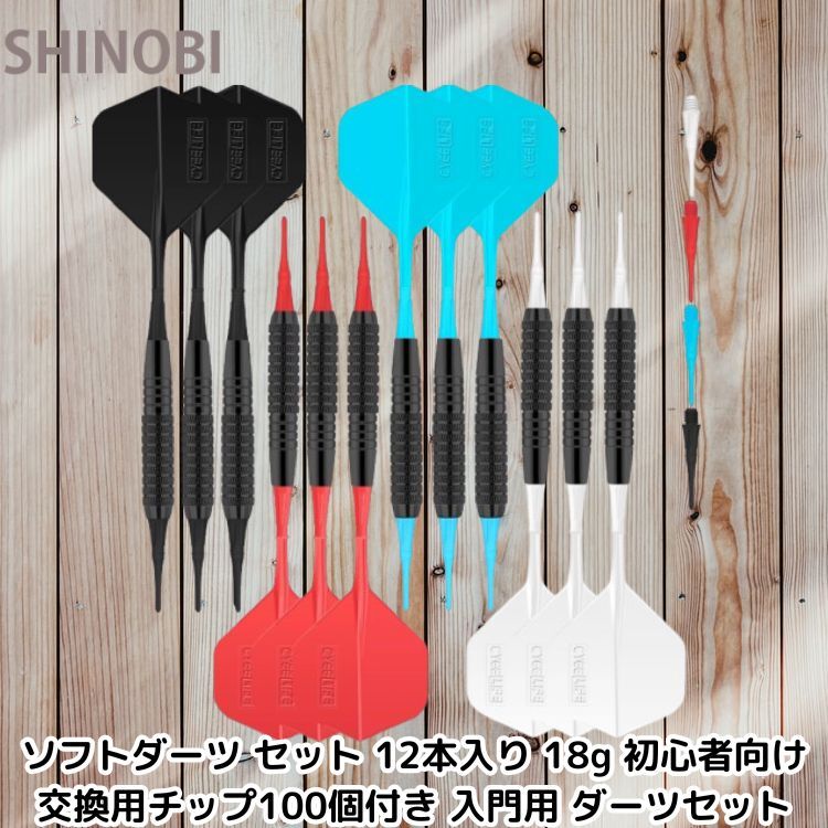 ソフトダーツ セット 12本入り 18g 初心者向け 家庭用 交換用チップ100個付き 入門用 ダーツセット