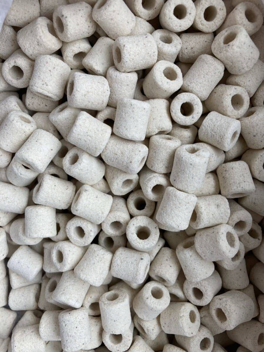こちら上部濾過、外部フィルター等使用、淡水/海水両方に対応できる多孔納豆菌パワーリング濾過材です。