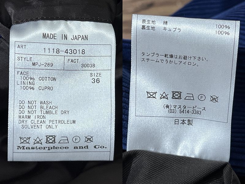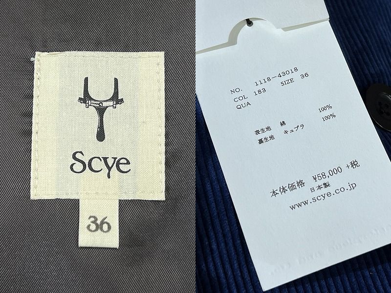 送無 定価63,800円 未使用 保管品 タグ付き SCYE サイ 日本製 1118-43018 イシス コットン コーデュロイ ドルラグ ブレザー ジャケット 紺