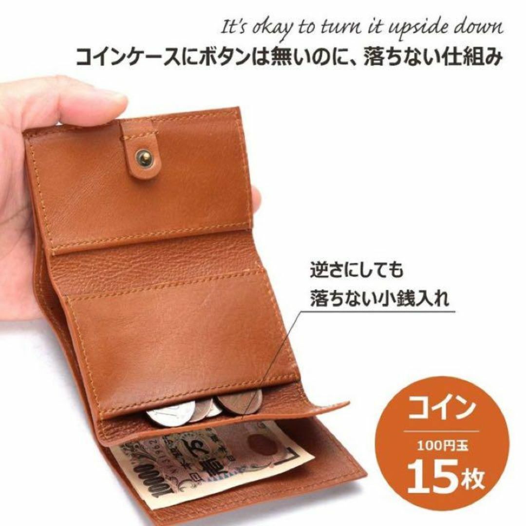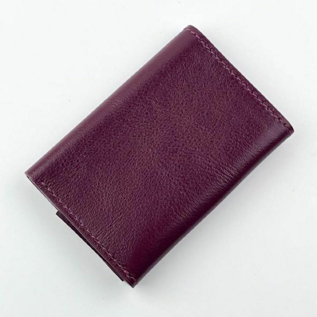 本革を使用した小さい三つ折り財布です。カードホルダーが1カ所に配置されており、クレジットカードや定期など他の三つ折り財布よりもたくさん収納できます。計算されたスリムな財布で、ズボンやスーツの内ポケットなどに入れてもスタイルを崩さず、邪魔になりません。