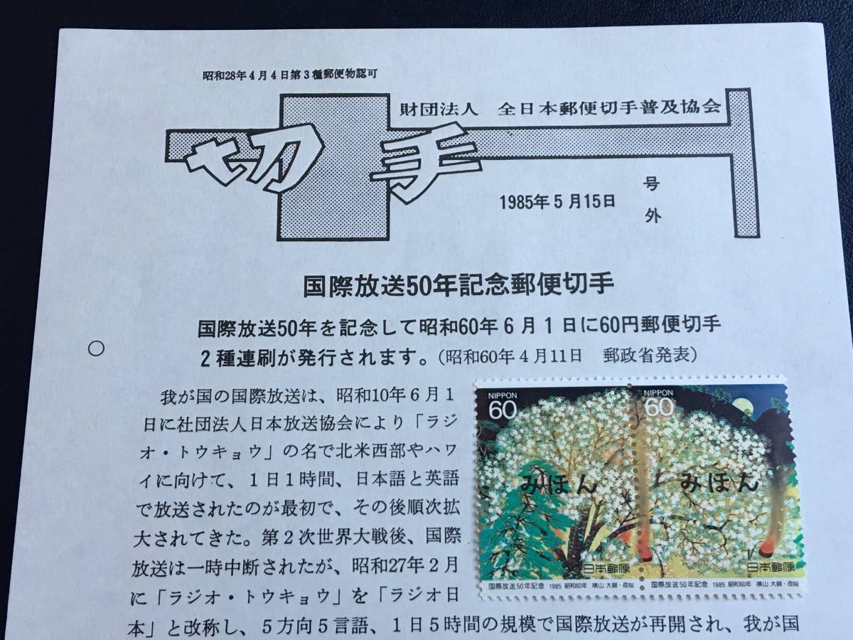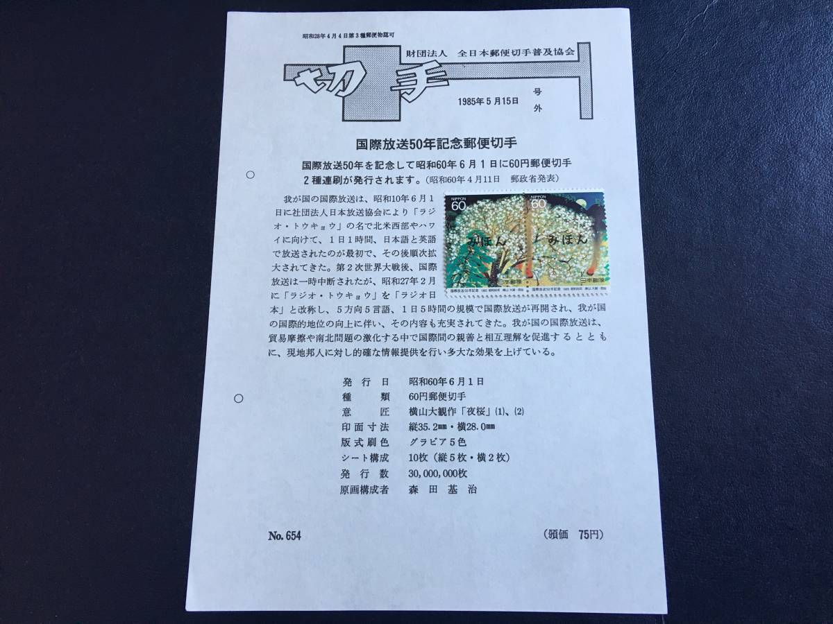 8722希少 みほん切手 見本切手 全日本郵便切手普及協会 国際放送50年 横山大観画 夜桜 記念切手解説書 月 花切手 美術品 FDC初日記念カバー