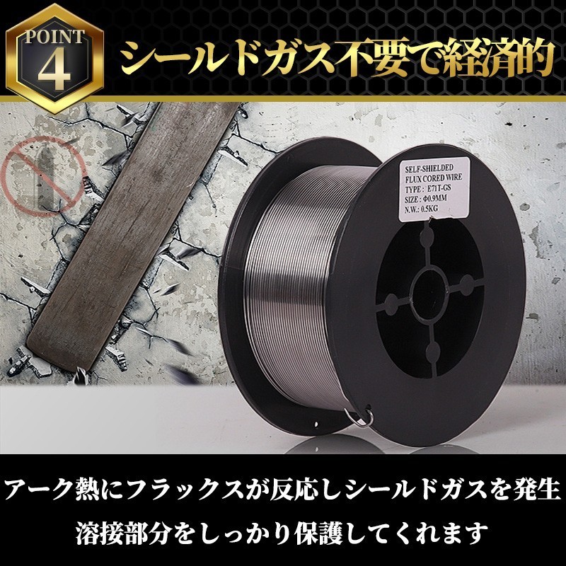 フラックス入りのセルフシールドタイプなのでアーク熱に反応しシールドガスが発生します。