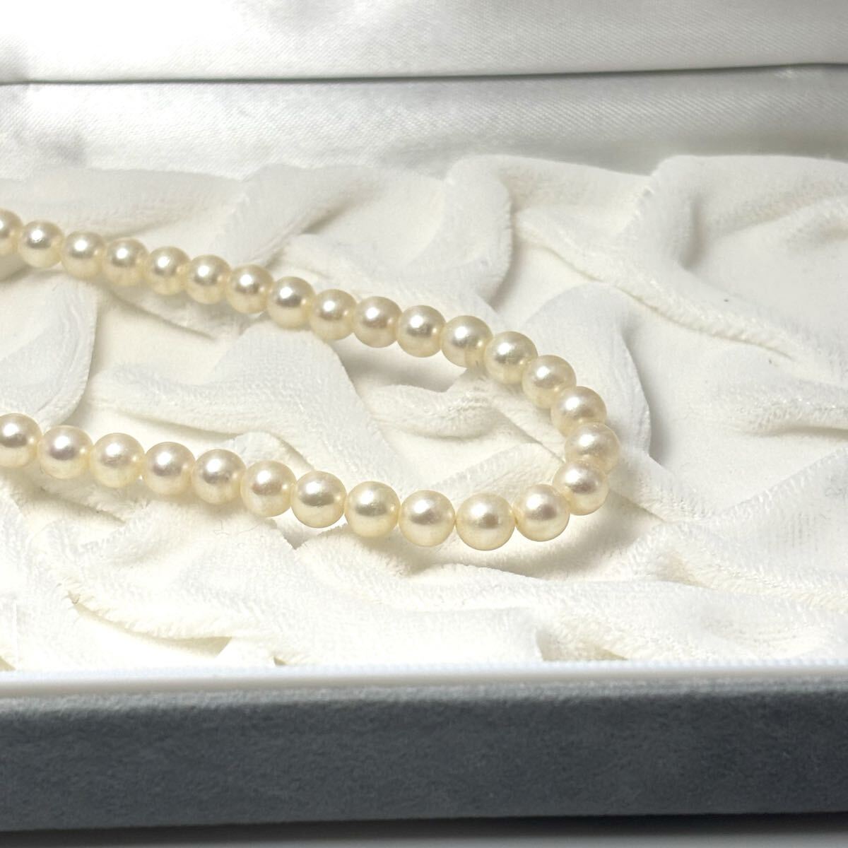 MIKIMOTO ミキモト パール ネックレス アコヤ真珠 本真珠 直径4.8~5.3mm 全長:40cm M 刻印 ホワイト系 テリ◎ 干渉色◎ 箱付き