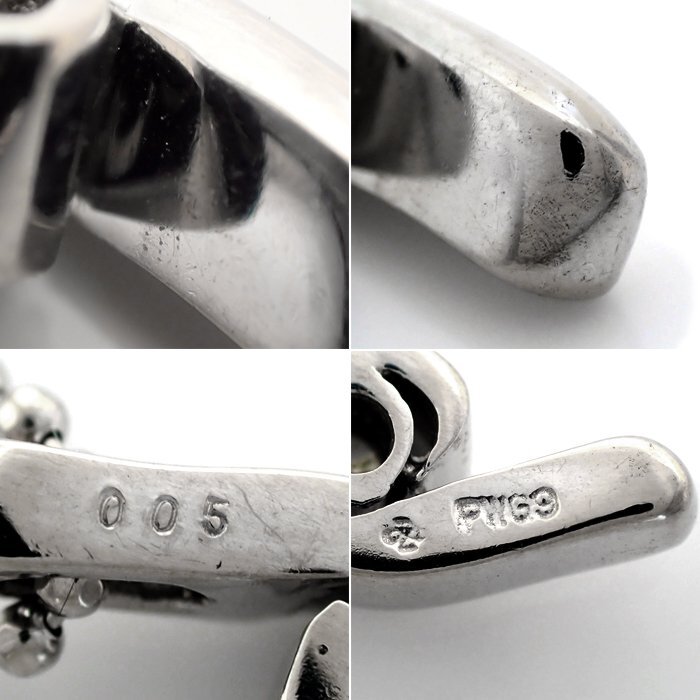 詳細 | ダイヤモンド:0.05ct 重量:2.4g トップ取外し不可能 ※ダイヤモンドには、10倍のルーペで確認できる天然特有のインクルージョンがあります。 PWG9に僅かな小傷やくすみ等があります。 | ||