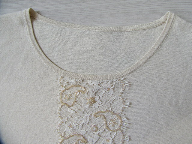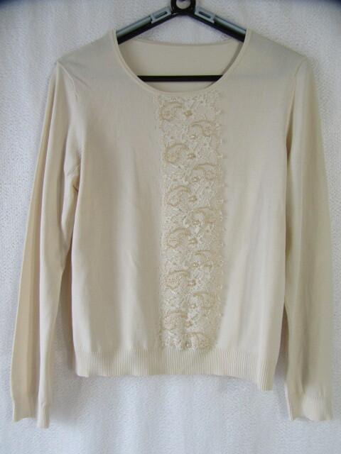 ロシャス ROCHAS レリアン Leilian ブラウス プルオーバーシャツ レース/ラインストーン/ビーズ ストレッチ素材 サイズ 11