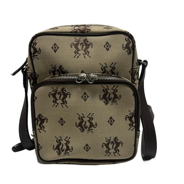 ケイタマルヤマ KEITA MARUYAMA ショルダーバッグ - コットン、レザー ベージュ×ダークブラウン 馬 バッグ