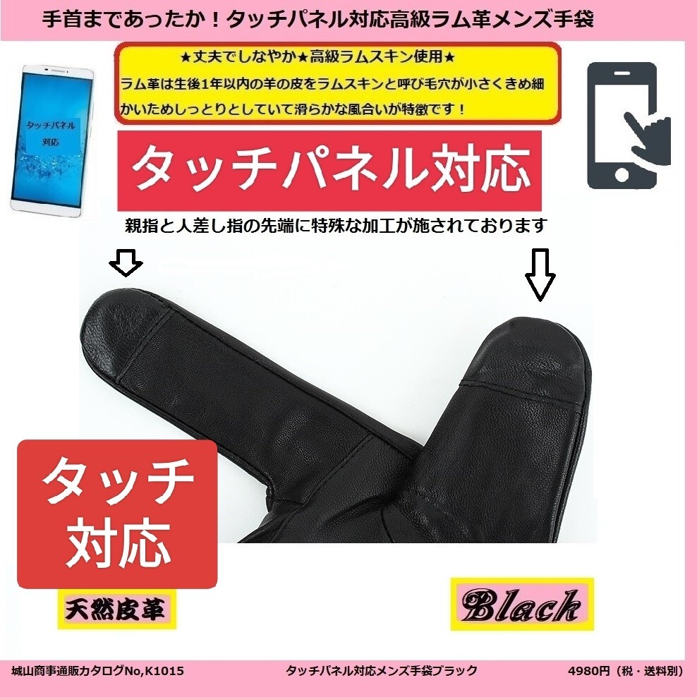 ●メンズ レザーグローブ タッチパネル スマホ タブレット対応 高級ラム革