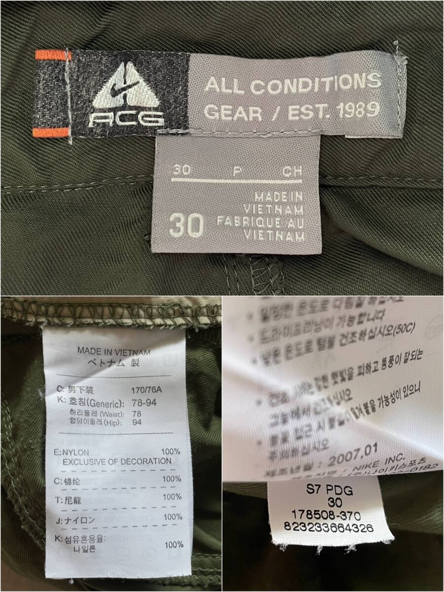 NIKE ACG ナイキ エーシージー ナイロン カーゴ ショートパンツ サイズ30 オリーブ ALL CONDITIONS GEAR nylon cargo short pants