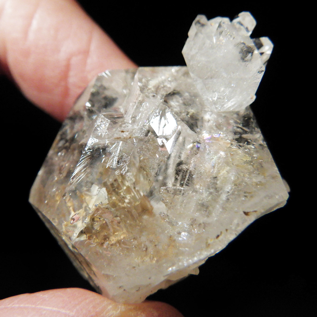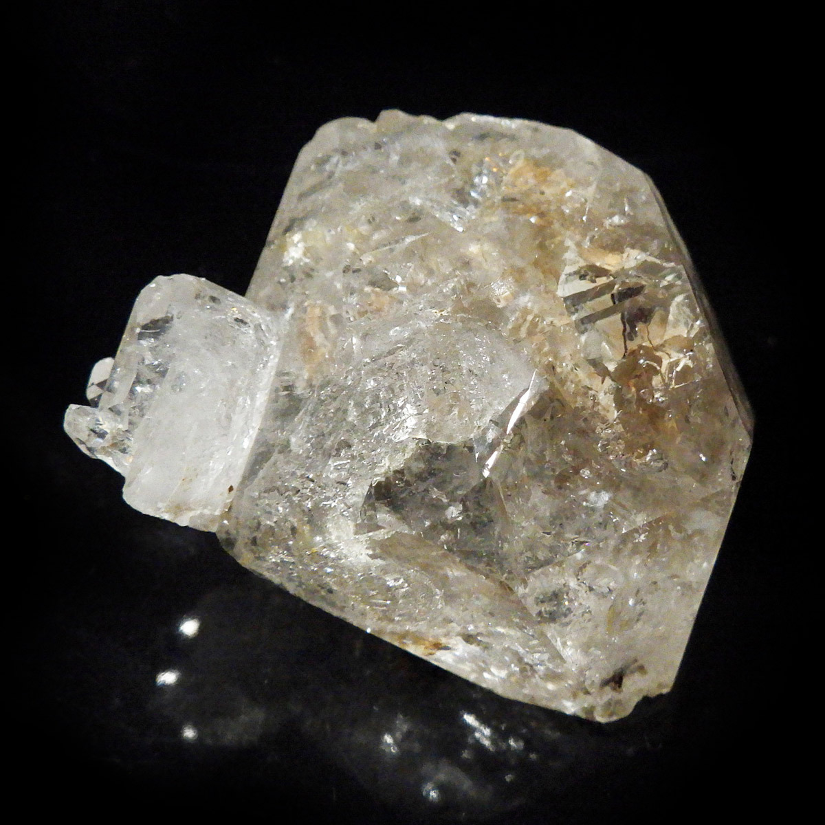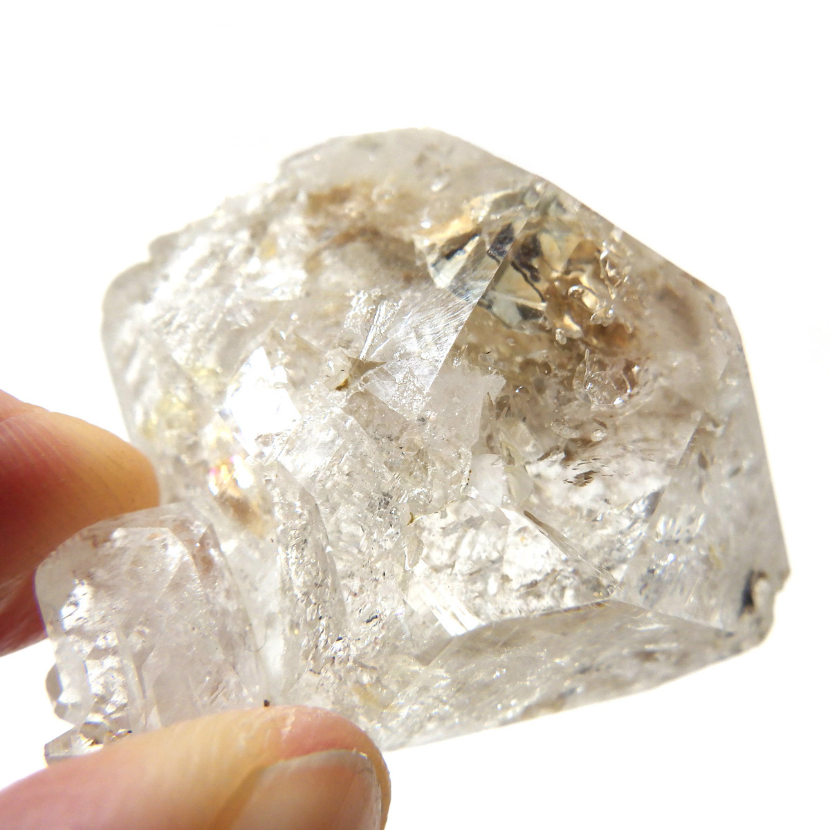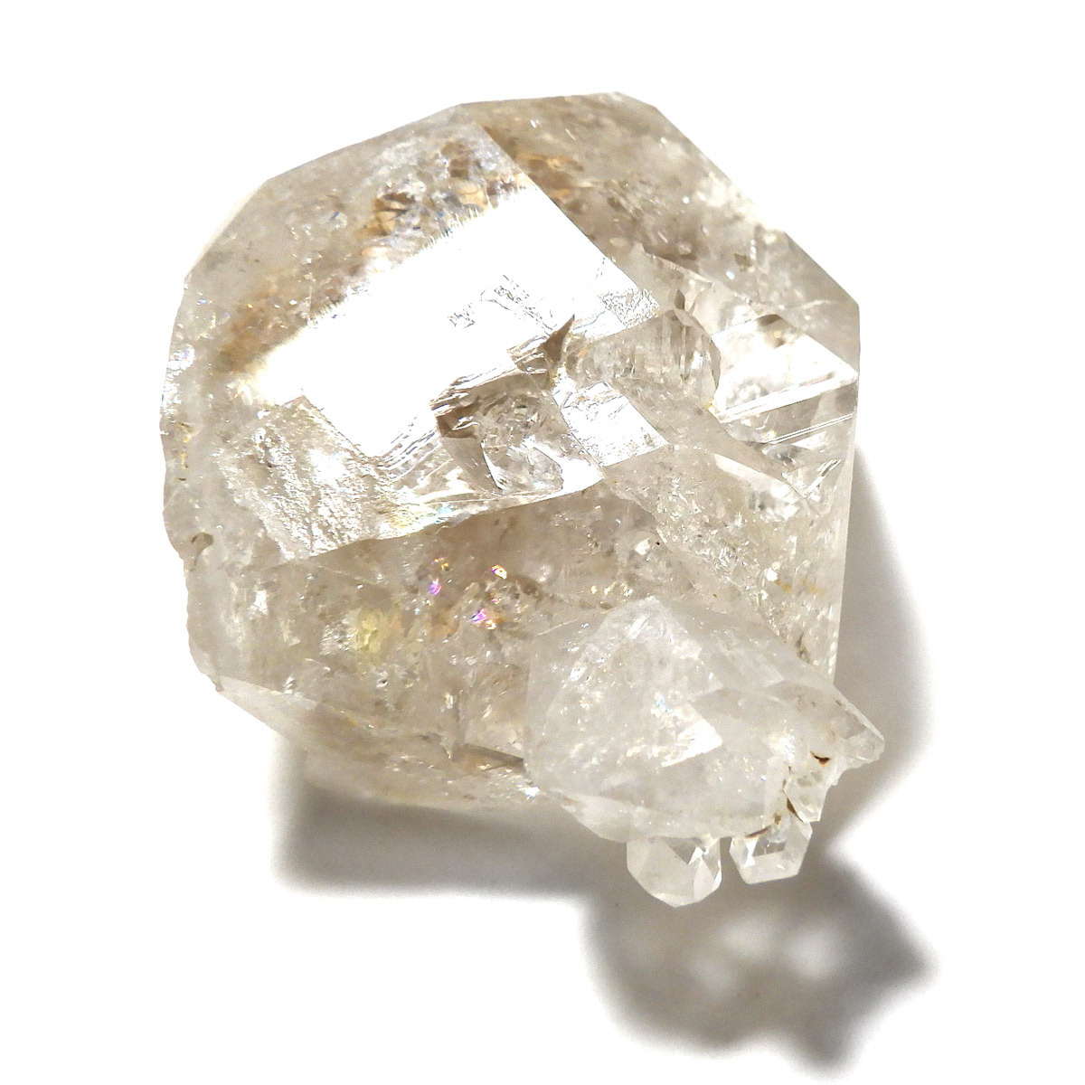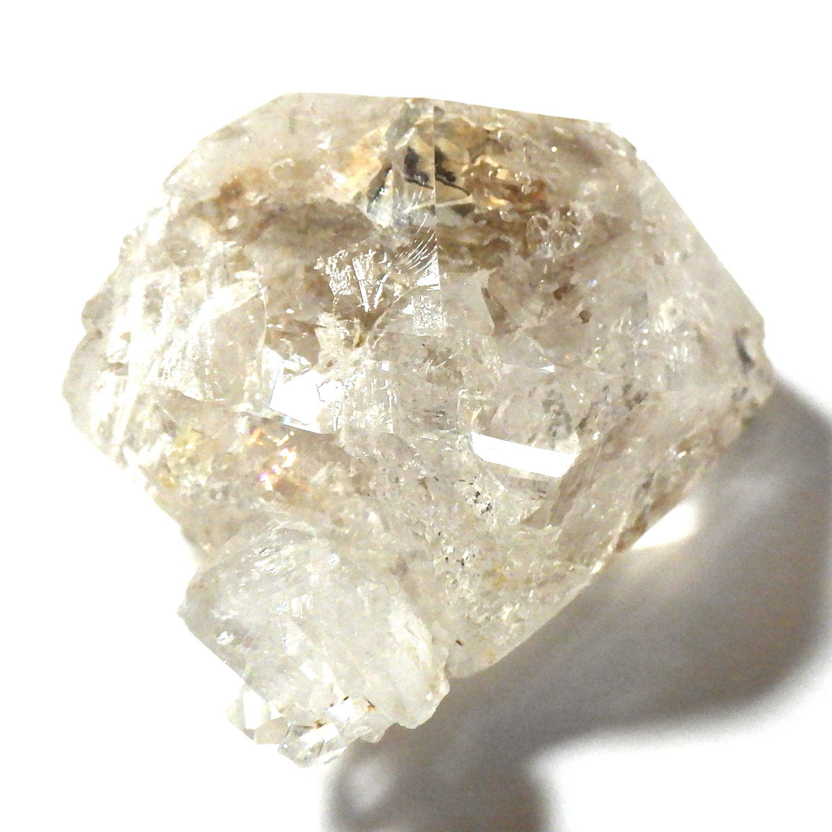 複数の結晶が結合して形成されるため、表面がゴツゴツとし、通常の水晶ポイントのようなはっきりした形にはなりません。このような外見から、骸骨水晶とも呼ばれており、表面がまるで鰐の鱗のように見えるものもあります。通常のイメージとはかけ離れた独特の形をした水晶です。表面には照りがあり、複雑な結晶をしておりますが透明度は高いです。