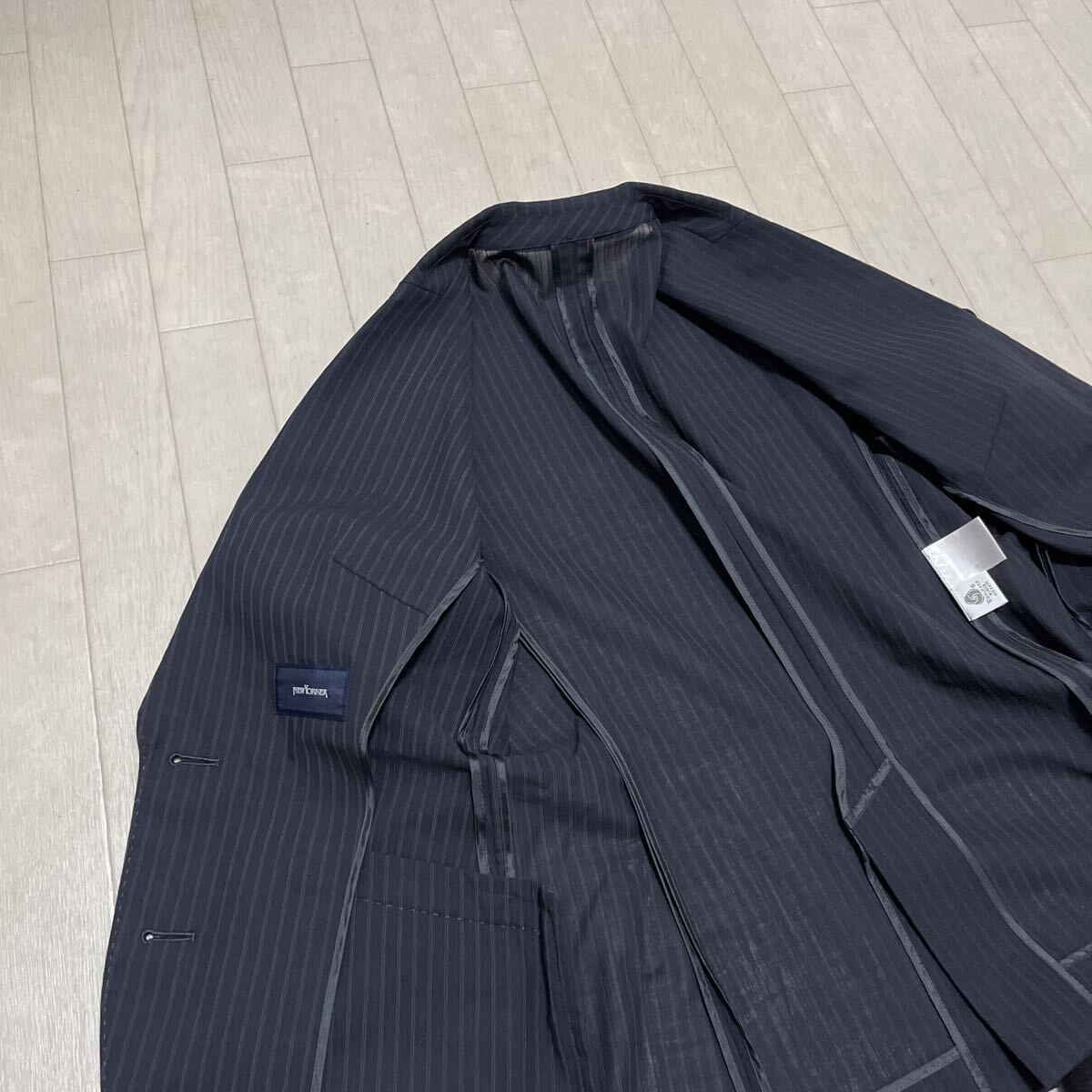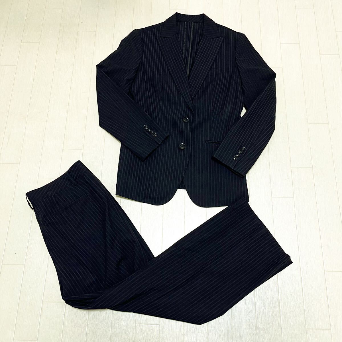 和827★② NEWYORKER ニューヨーカー スーツ セットアップ テーラードジャケット パンツ ストライプ シングル 11AR ブラック レディース