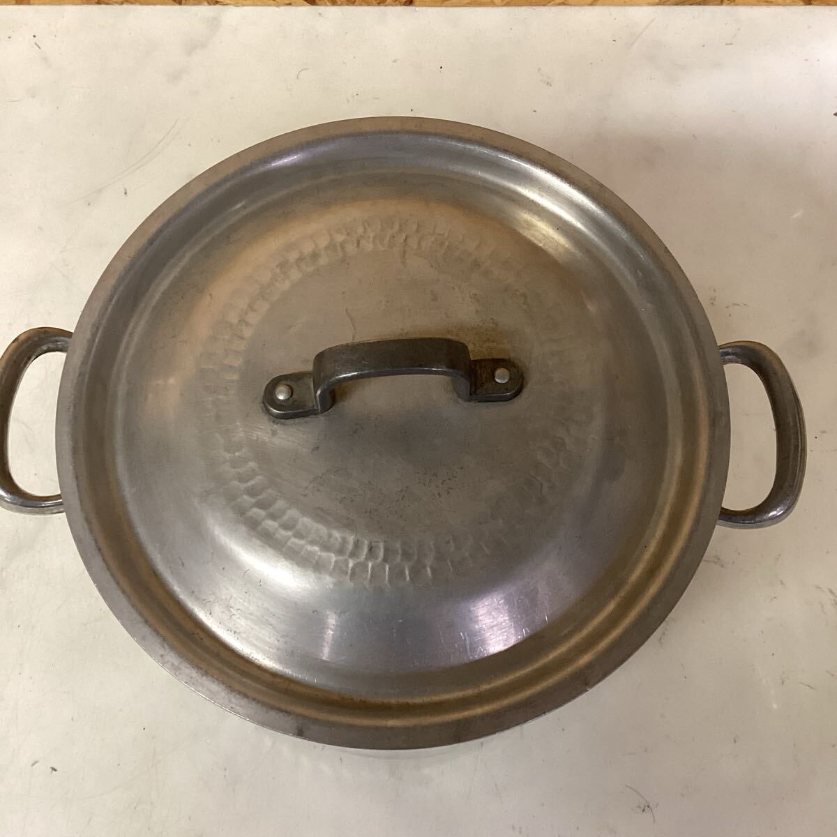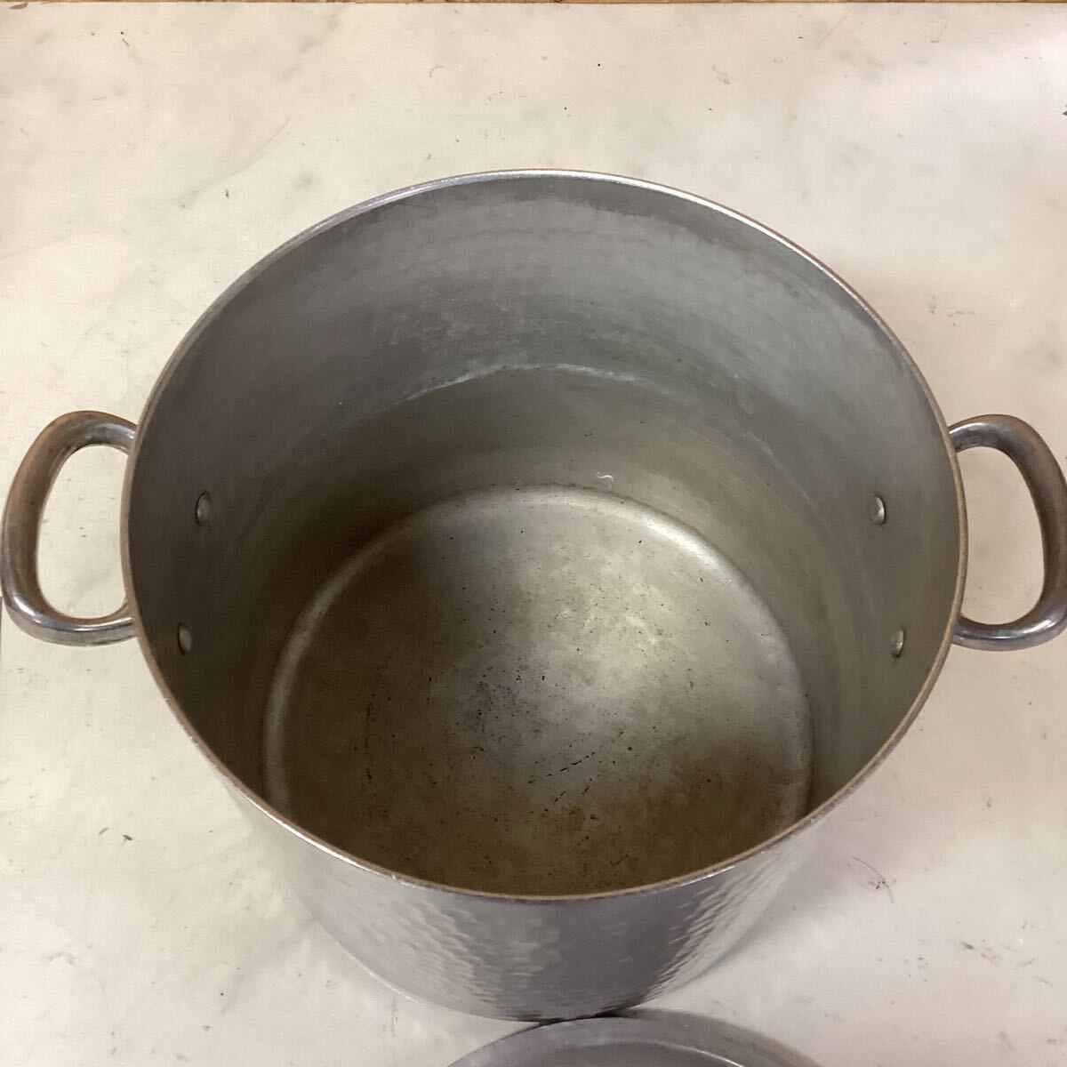 アルミ製のハンマーフィニッシュ寸胴鍋、蓋付きで大容量。