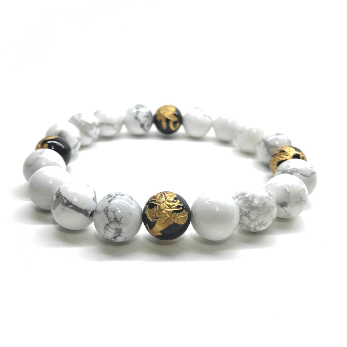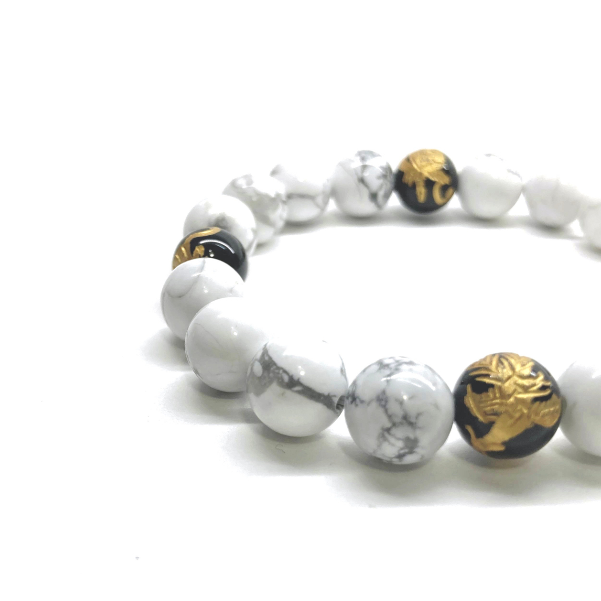 10mm 四神獣金彫オニキス×ハウライト パワーストーン ブレスレット天然石 運気上昇 開運 金運 恋愛運 青龍 白虎 玄武 朱雀 ☆