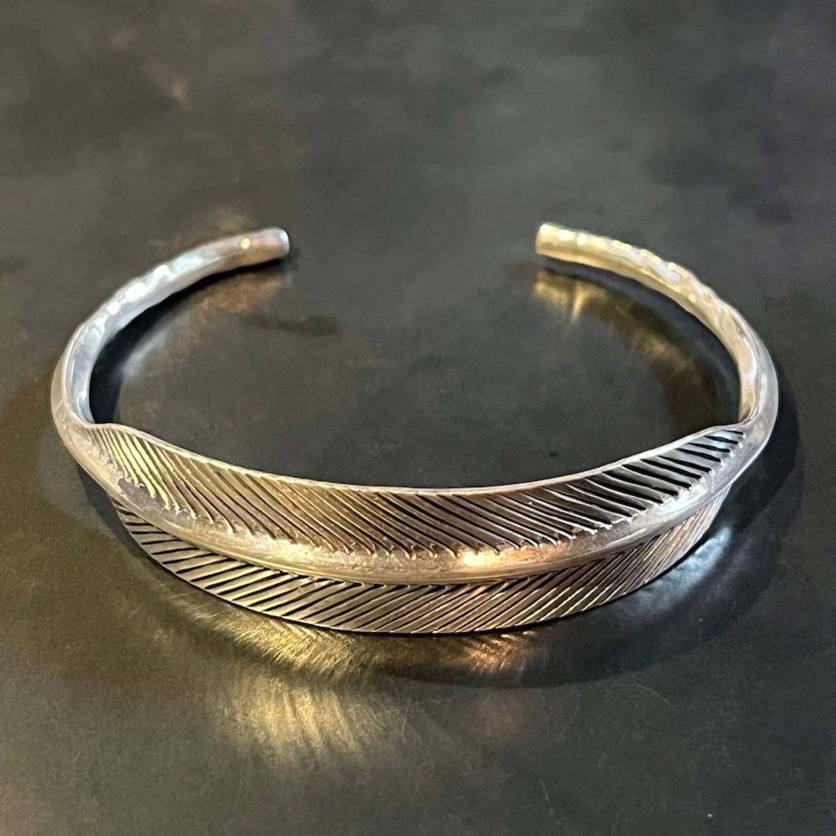 海外で買い付けたフェザーデザインのシルバーワイドバングルです。