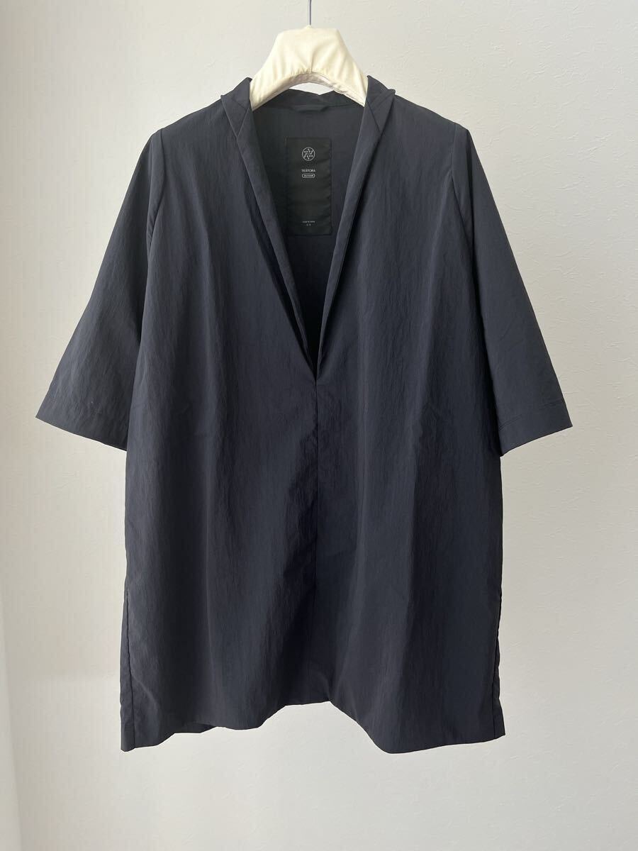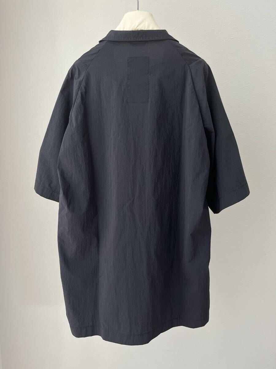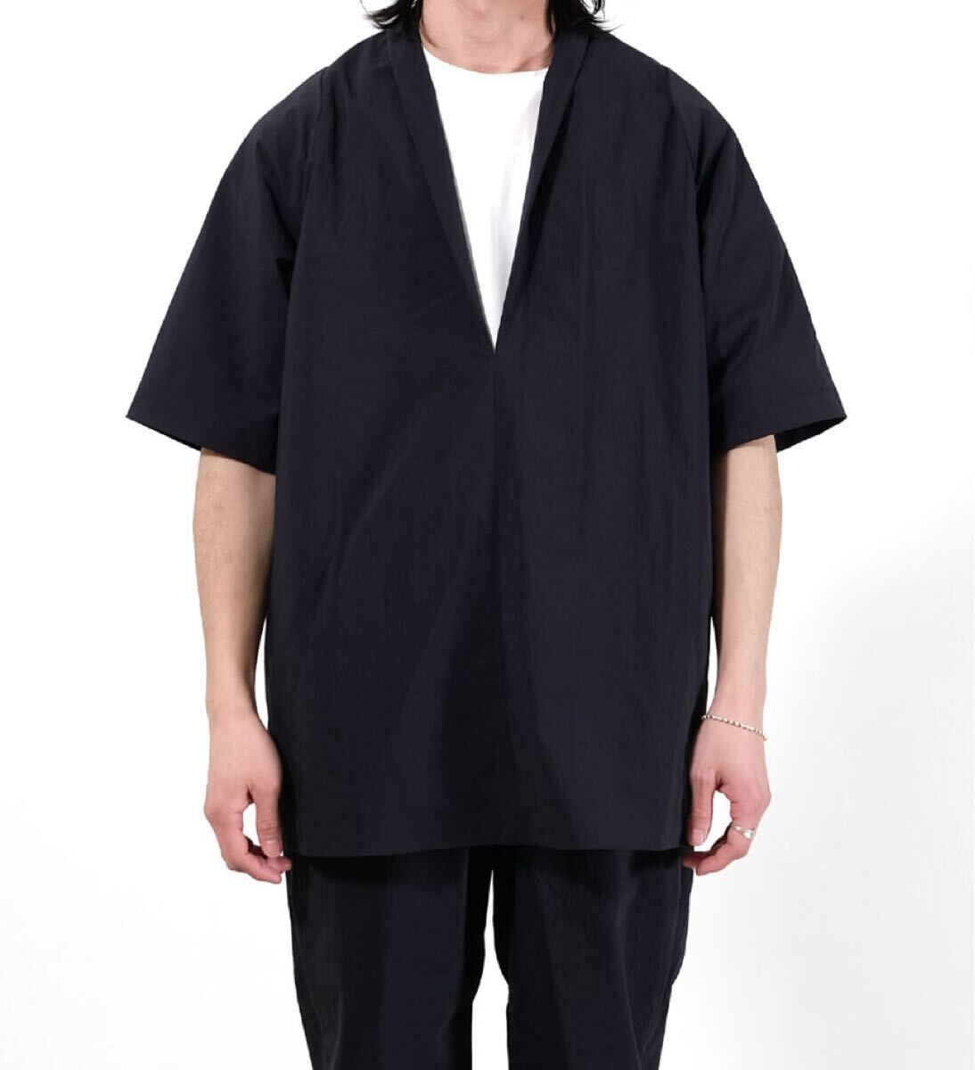ゆったりとしたシルエット、スタンドカラー、深く入ったスリットが特徴的なモデルとなっております。
