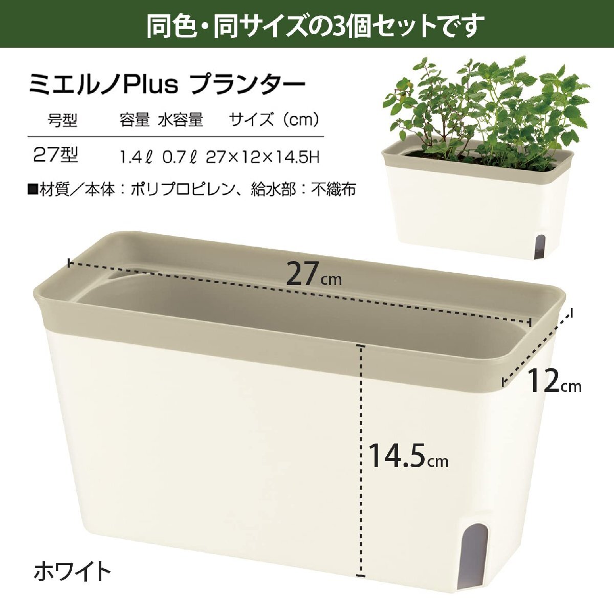 【在庫限りです】【おすすめ】リッチェル002588ミエルノPlusプランター1.4L、水容量27型N0.7Lホワイト土容量3個セット
