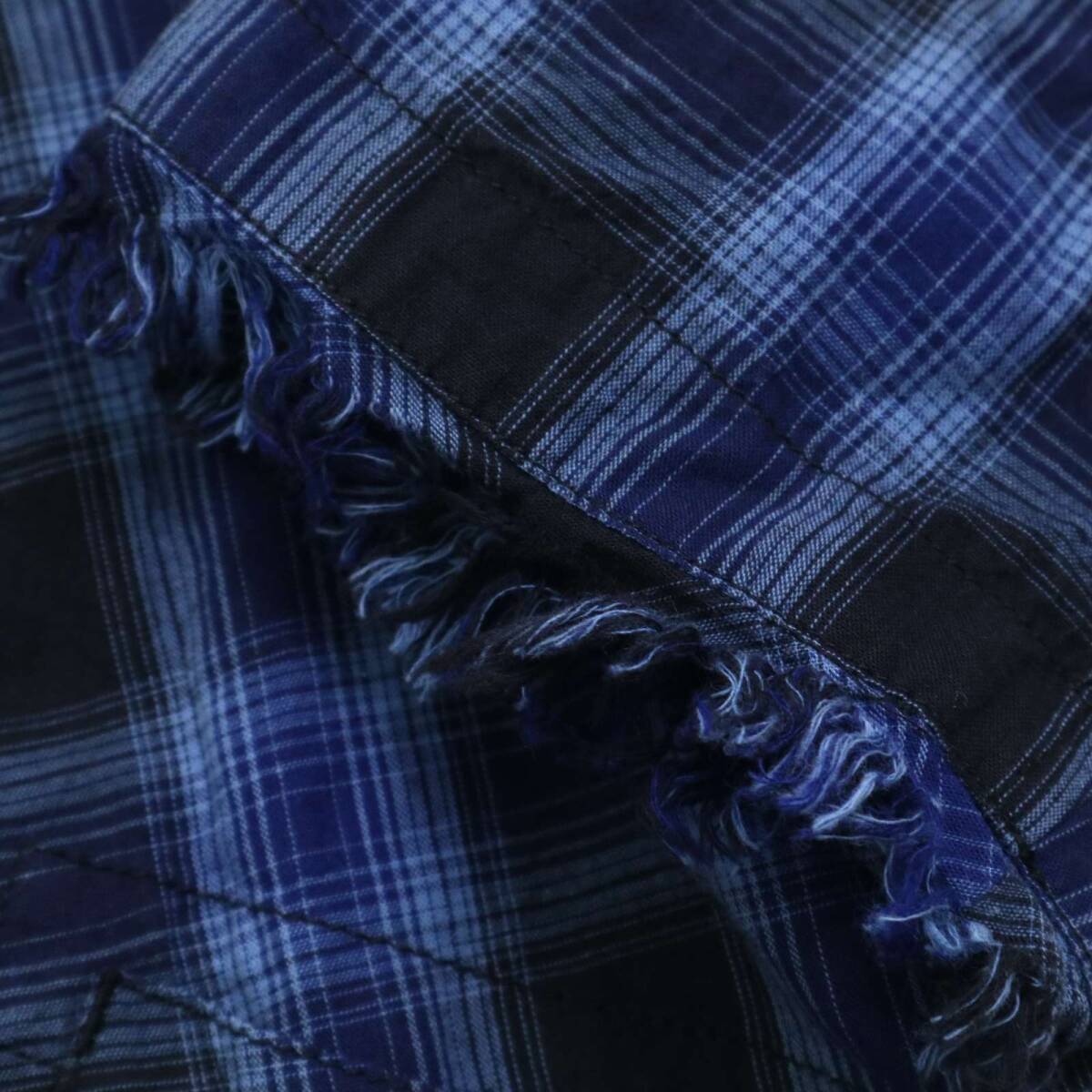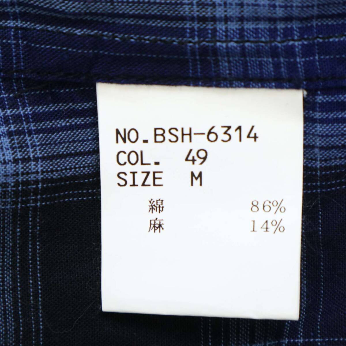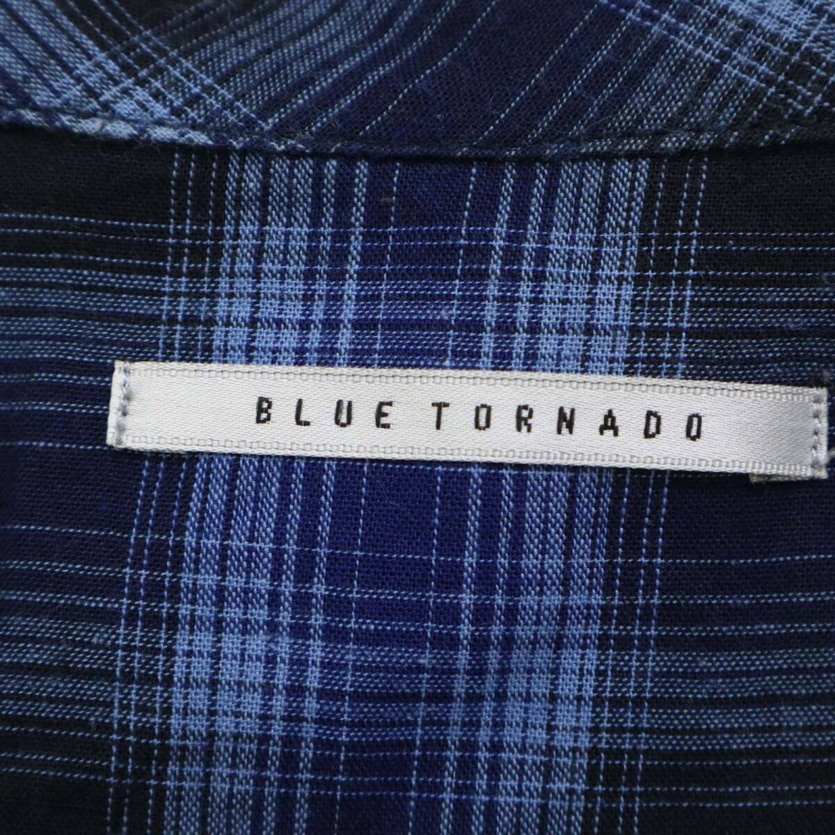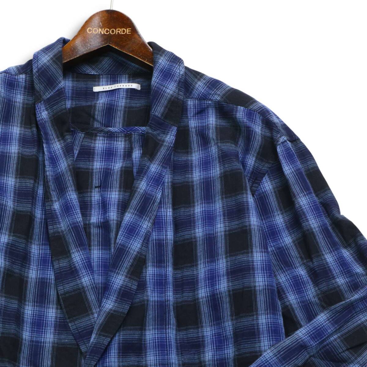 BLUE TORNADO トルネードマート 麻 リネン混 チェック柄 カットオフ 7分袖 ガウン 羽織り ロング カーディガン Sz.M メンズ