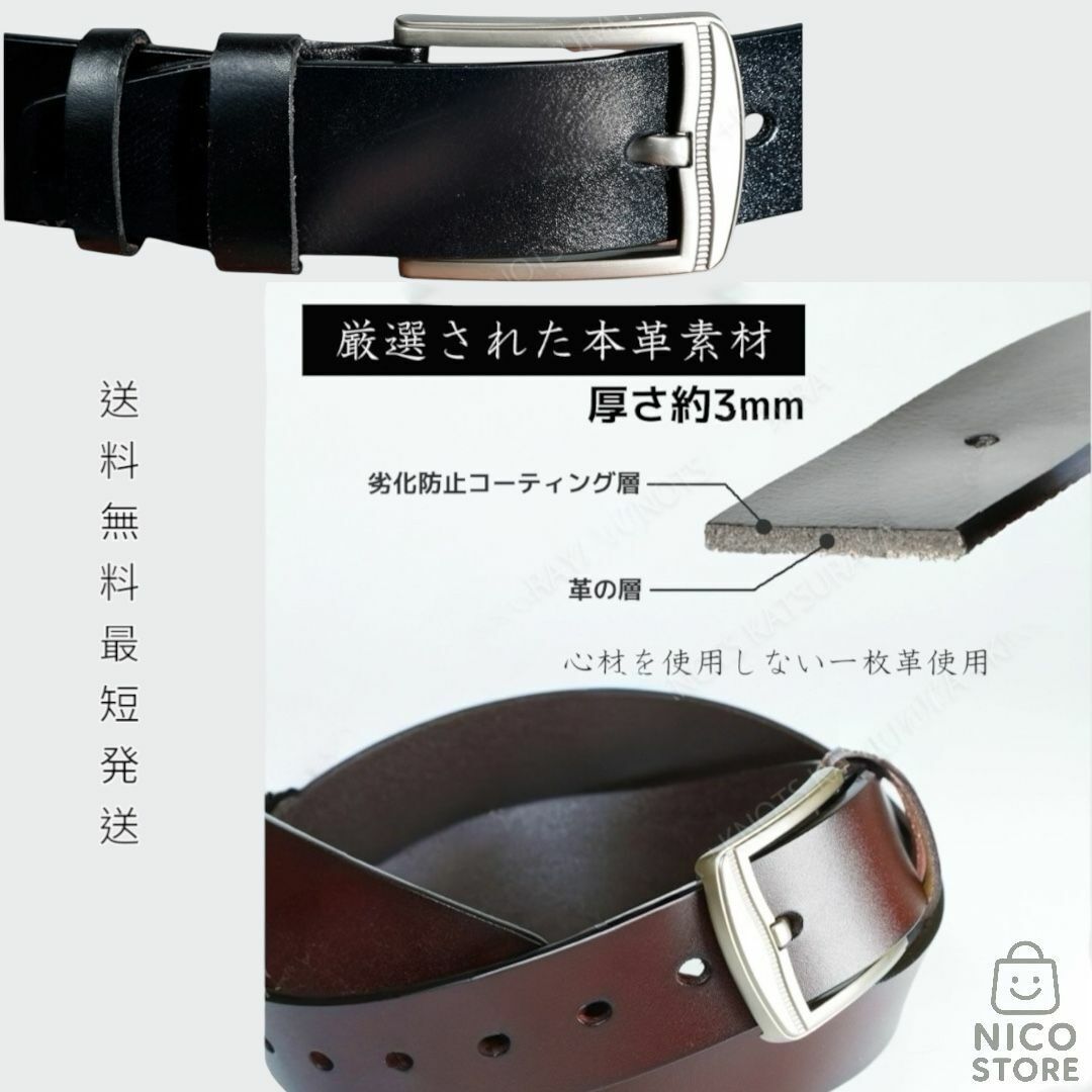 本革 メンズ 一枚革 レザー カジュアル 普段使い デニム ジーンズ ジーパン チノパン 太い 太め 長さ調整可