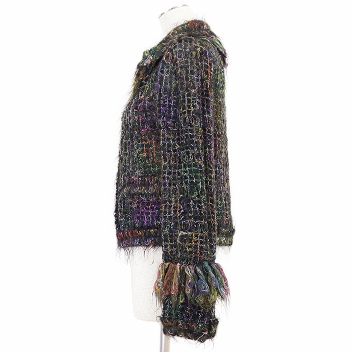 シリーズCHANEL シャネル ジャケット 03A P22059 フリンジ モヘアブレンド COCOマーク ボタン アウター レディース 38 マルチカラー 仏製