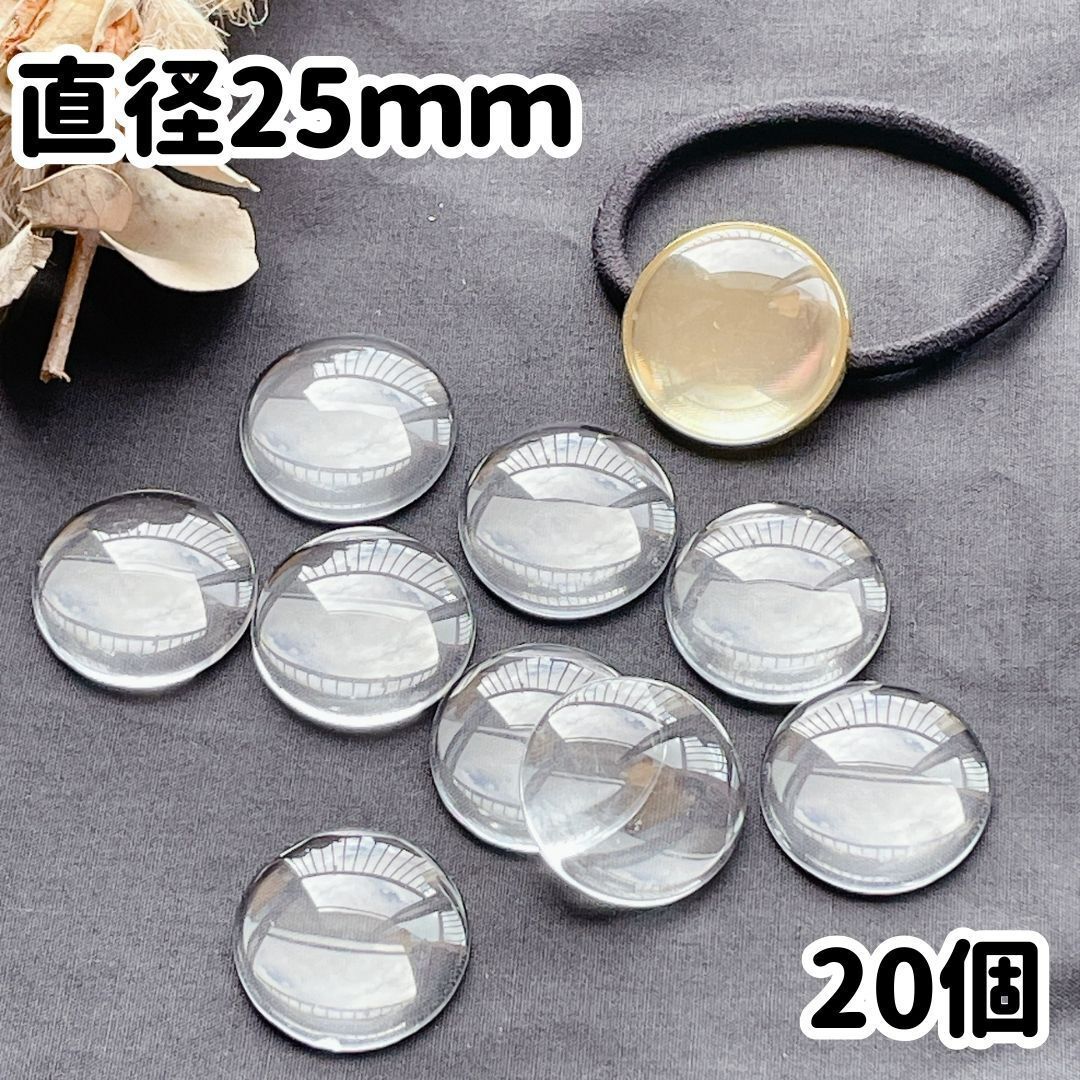 ぷっくりとした立体感が美しい、直径約25mmの透明カボションパーツです。