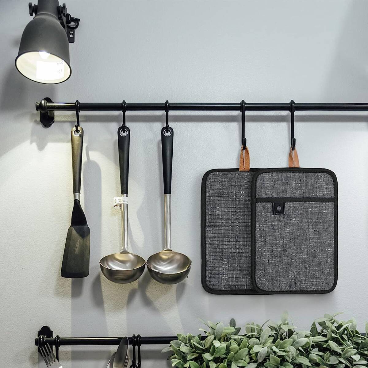 シンプルでスタイリッシュな北欧風のデザイン。 収納に便利なストラップ付きで、キッチンのどこにでもフックで吊るすことができます。