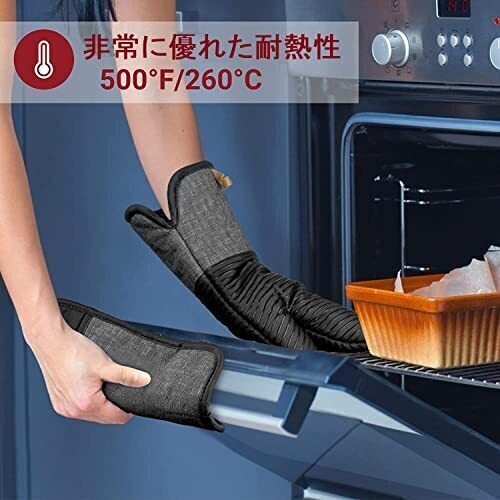 【耐熱シリコン&快適な綿層】:耐熱温度260℃のプロ仕様に作られているミトンで、生地が厚く。そして、防水性能を併せ持ち、熱湯と水蒸気によるやけどなどを防止します。ミトンの内側は耐熱性のある綿層を採用して、最大限度に両手を守り、快適な環境を与えます。熱いものを持つ時に手や腕を熱から守ります、熱々のお皿と食器を気軽に持って食卓へ運びます。