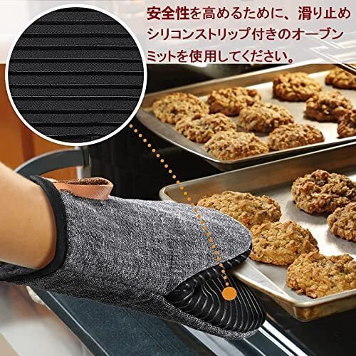 【滑り止め機能】:表面のチェック柄の凹凸はシリコンが付いているので、滑りにくく、オーブンから食品をより安全に取り出すことができ、安全で効率的な調理を保証します。