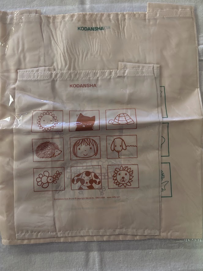 講談社の幼児雑誌、年間購読特典。 講談社とディックブルーナのコラボ 親子エコバッグです。 新品未開封のまま長年自宅保管していたものになります。 大と小、親子でオソロイで持てる色違いのエコバッグが2点セットになっています。 新品未開封のため、おおよそのサイズになりますが 大:縦35.2センチ、横31センチ 小:縦25センチ、横21.5センチ マチあり 多少の誤差はご了承ください。 非売品 レア 送料の関係上、二つ折りにしてお送りします。 ご了承ください。 | ||||||||