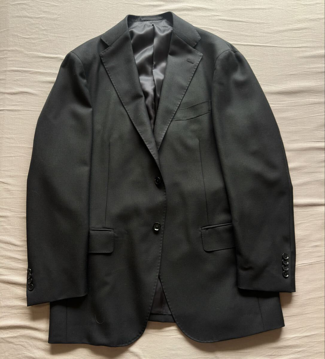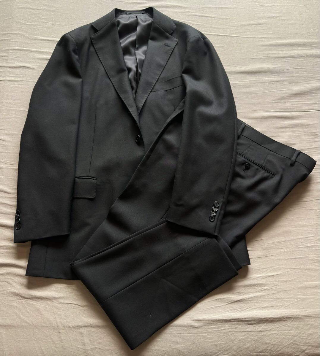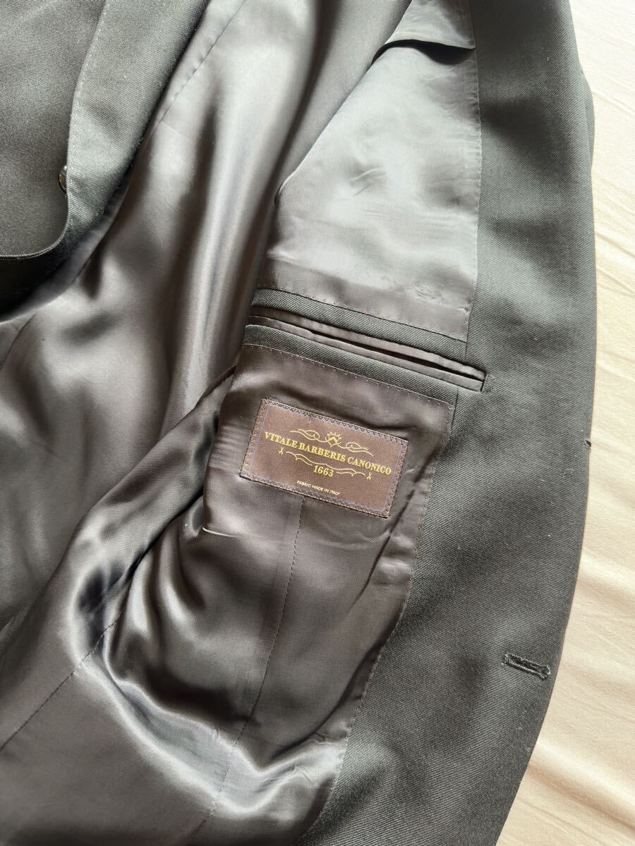 VITALE BARBERIS CANONICO の生地を使ったツイルスーツでして、光沢感も抑えられているため冠婚葬祭にも使用できます。
