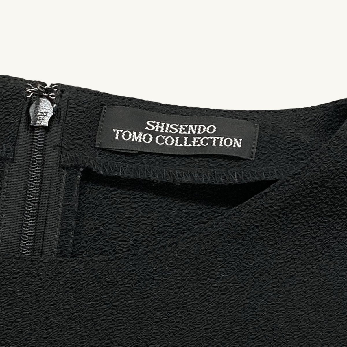 美品 トモコレクション/詩仙堂 ちりめん織り花チェック柄コンビワンピース 黒 sc716