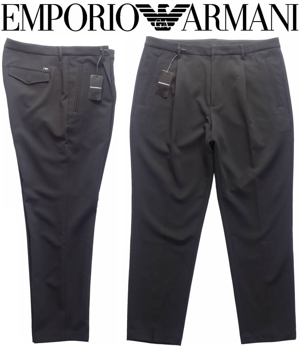 秋冬物新品63,000円EMPORIO ARMANIアルマーニ★これでお洒落確定。休日こそ履きたい実は楽ちん黒スラックス【46=日本M】