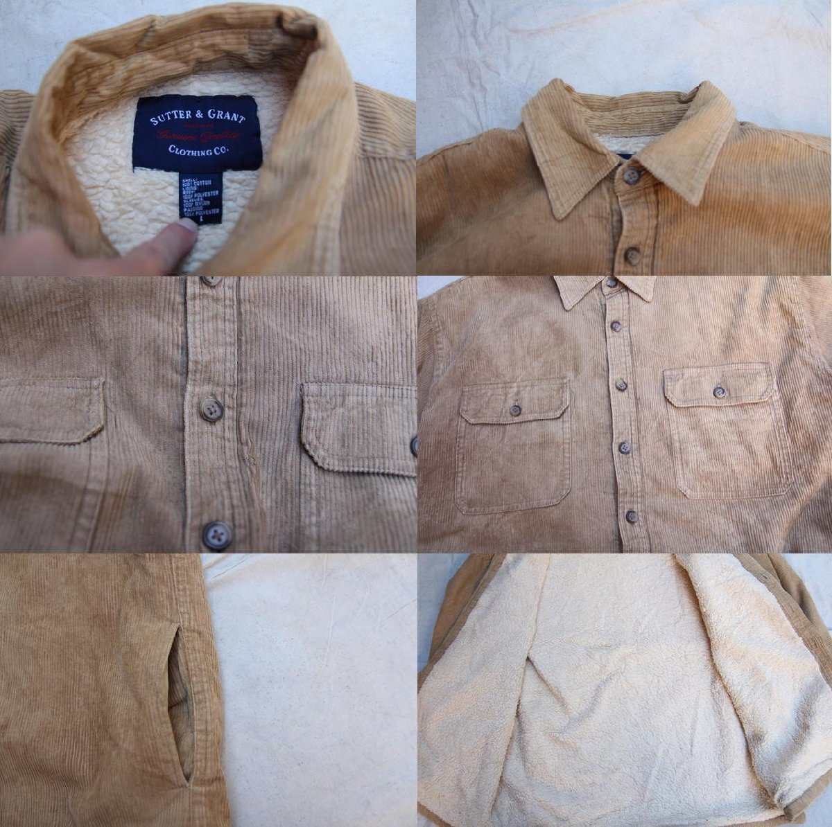 90s 00s VINTAGE ヴィンテージ USED 古着 Sutter Grant L/S Corduroy Shirts Boa Liner コーデュロイシャツ ボアライナー Beige L
