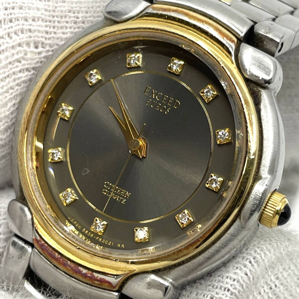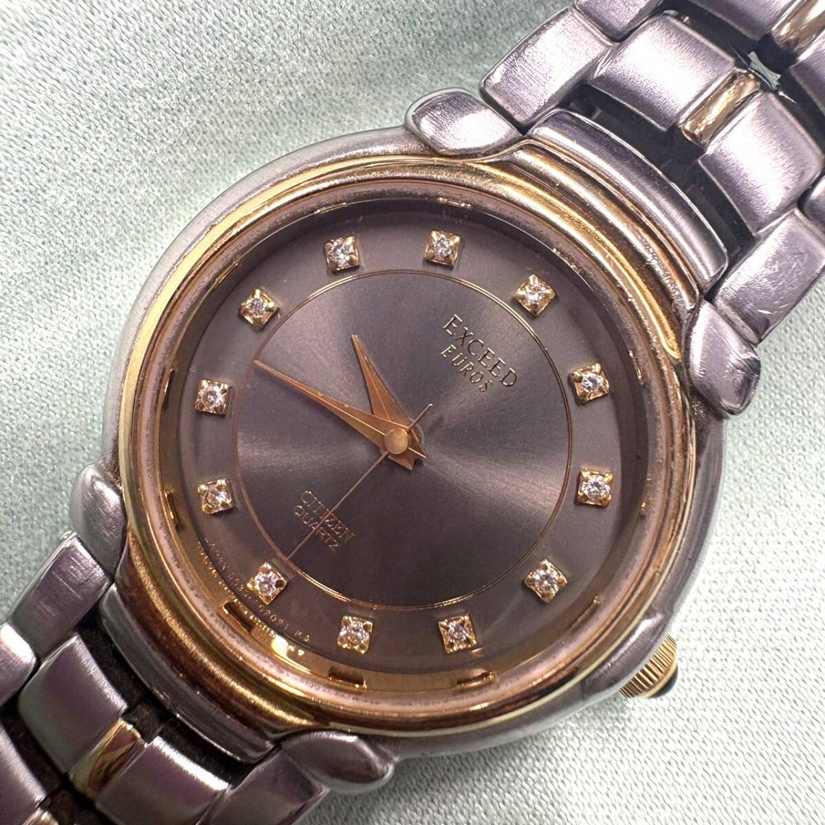 【動作未確認】CITIZEN シチズン EXCEED エクシード EUROS ユーロス クォーツ 腕時計 3針 ラウンド コンビ 12P 石 5636-F61028