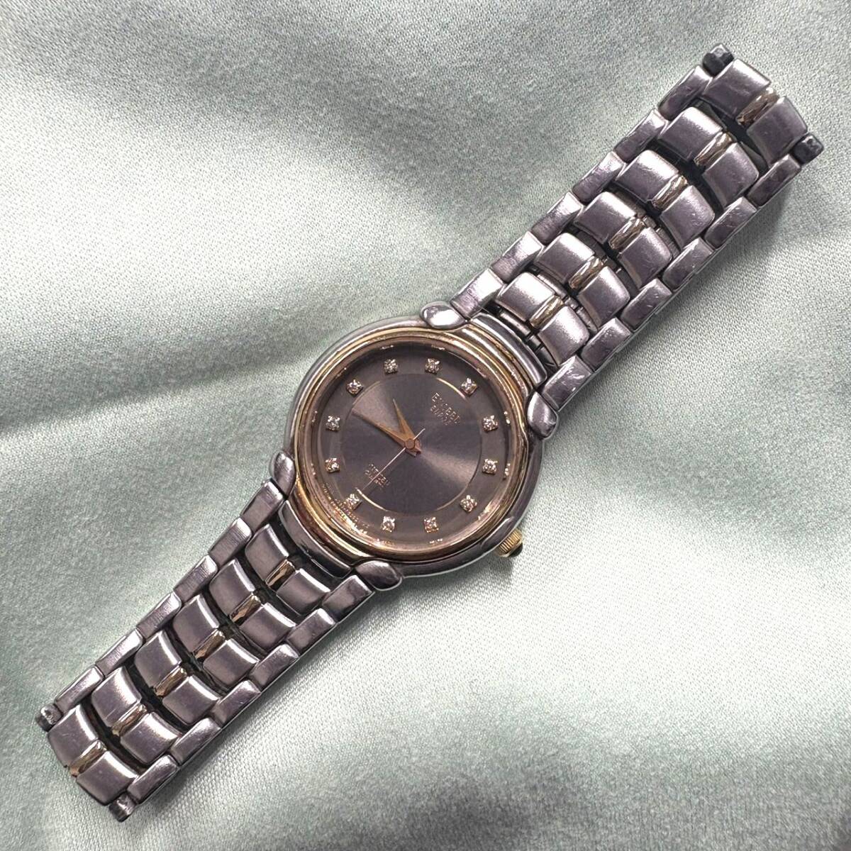 クォーツ 腕時計 3針 ラウンド コンビ 12P 石 レディース
