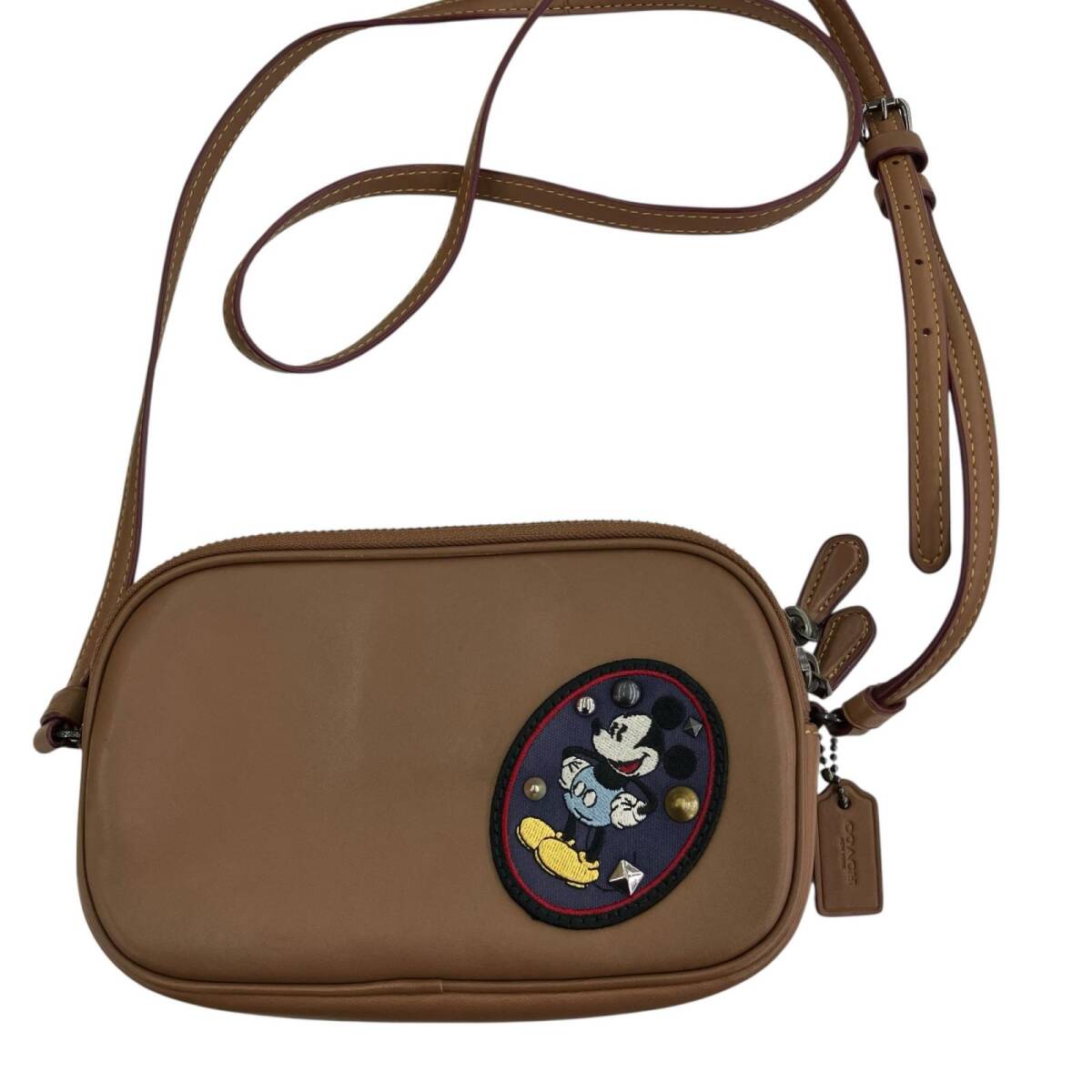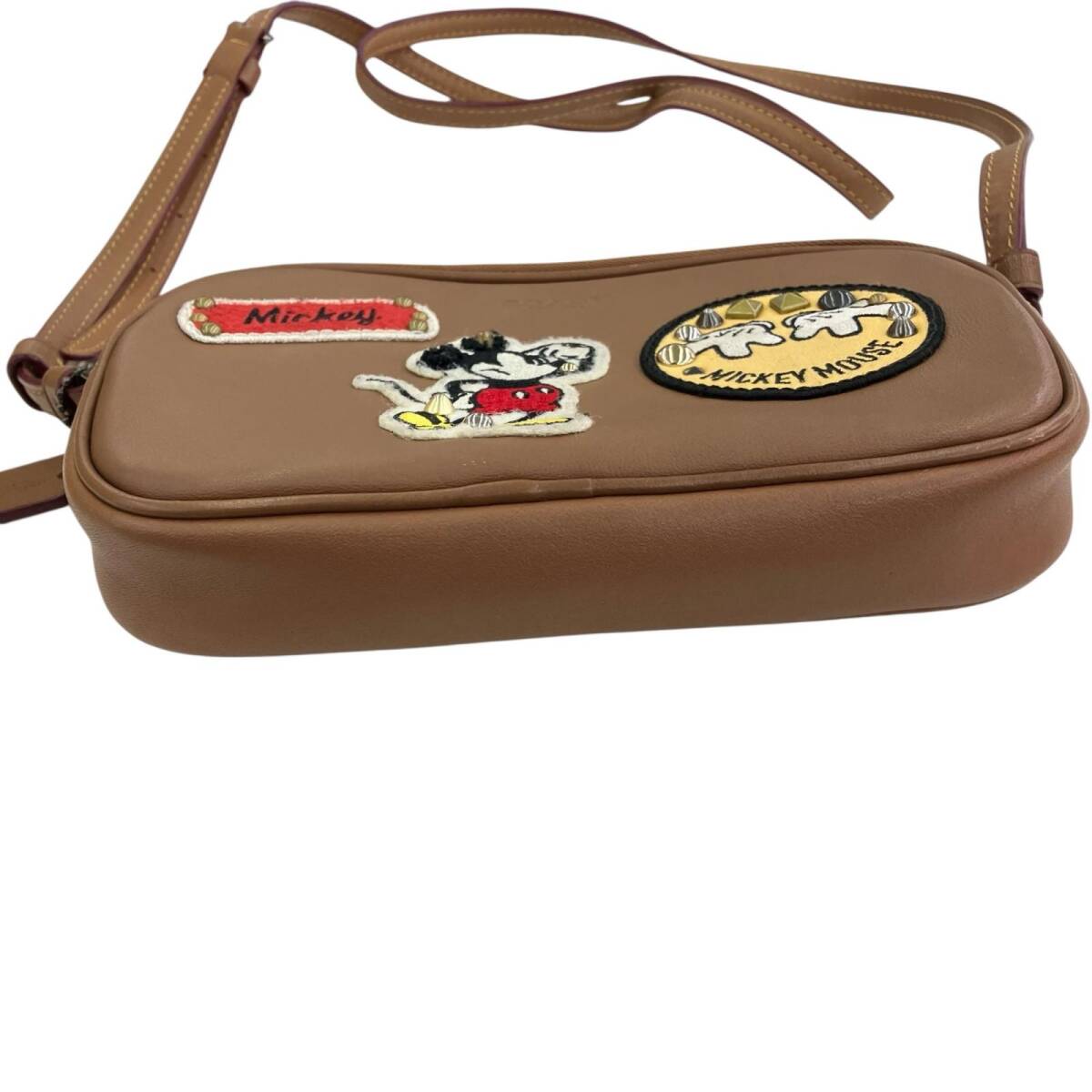 186000 現状品 COACH コーチ ディズニーコラボ ミッキー ワッペン パッチワーク スタッズ A1777-F59532 ブラウン キャメル レザー
