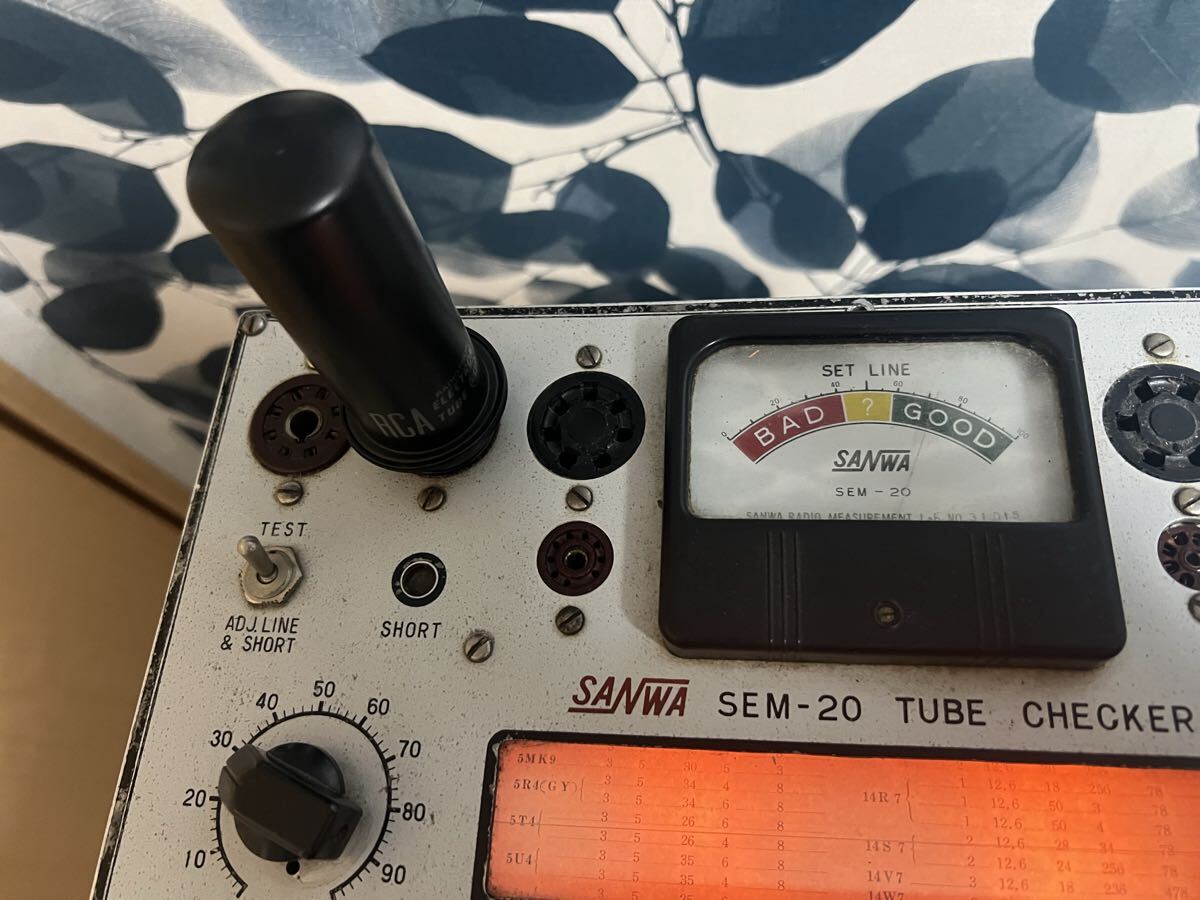 当方の試験機で同型式の未使用の真空管を試験すると75程度の値を示しますので基準として参考にしてください。
